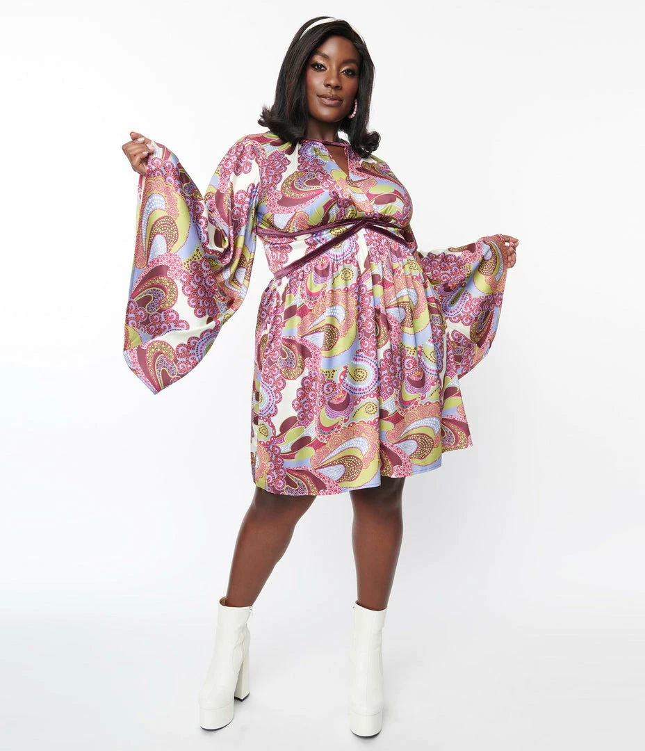 Hot Sale ๐งจ Trending Smak Parlour Plus Size Purple & Green Paisley Print Mini ๐ Dress ๐
