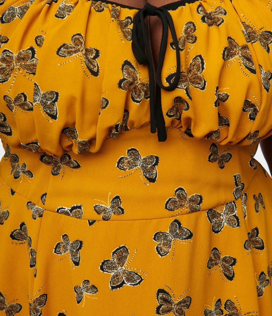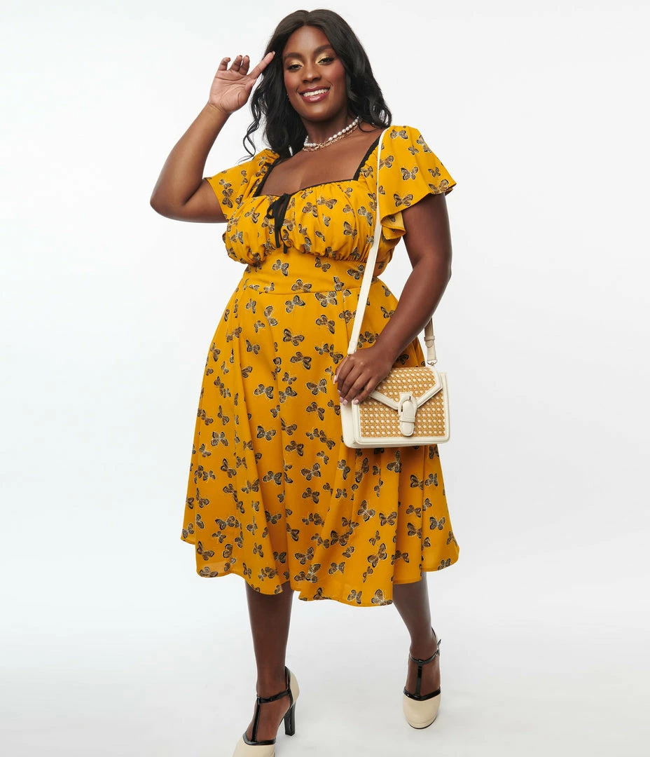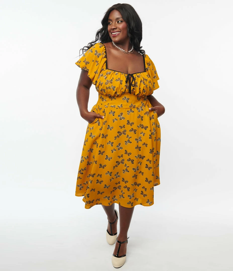 Coupon ๐ Trending Unique Vintage Plus Size 1950s Marigold & Butterfly Print Swing ๐ Dress ๐