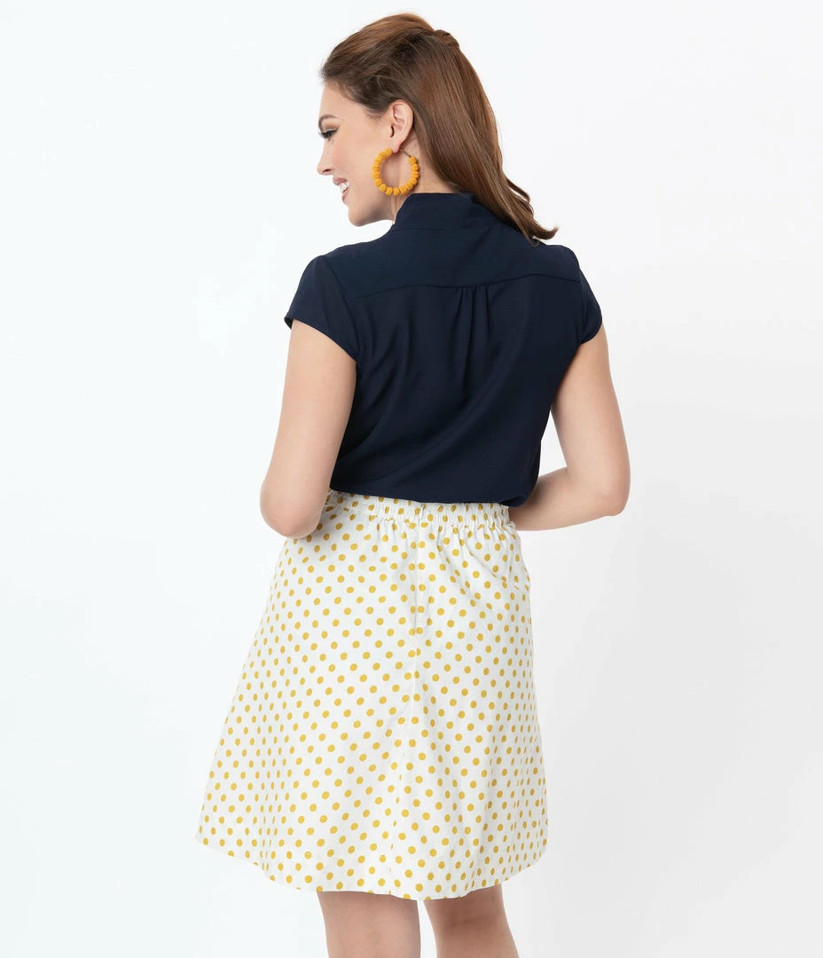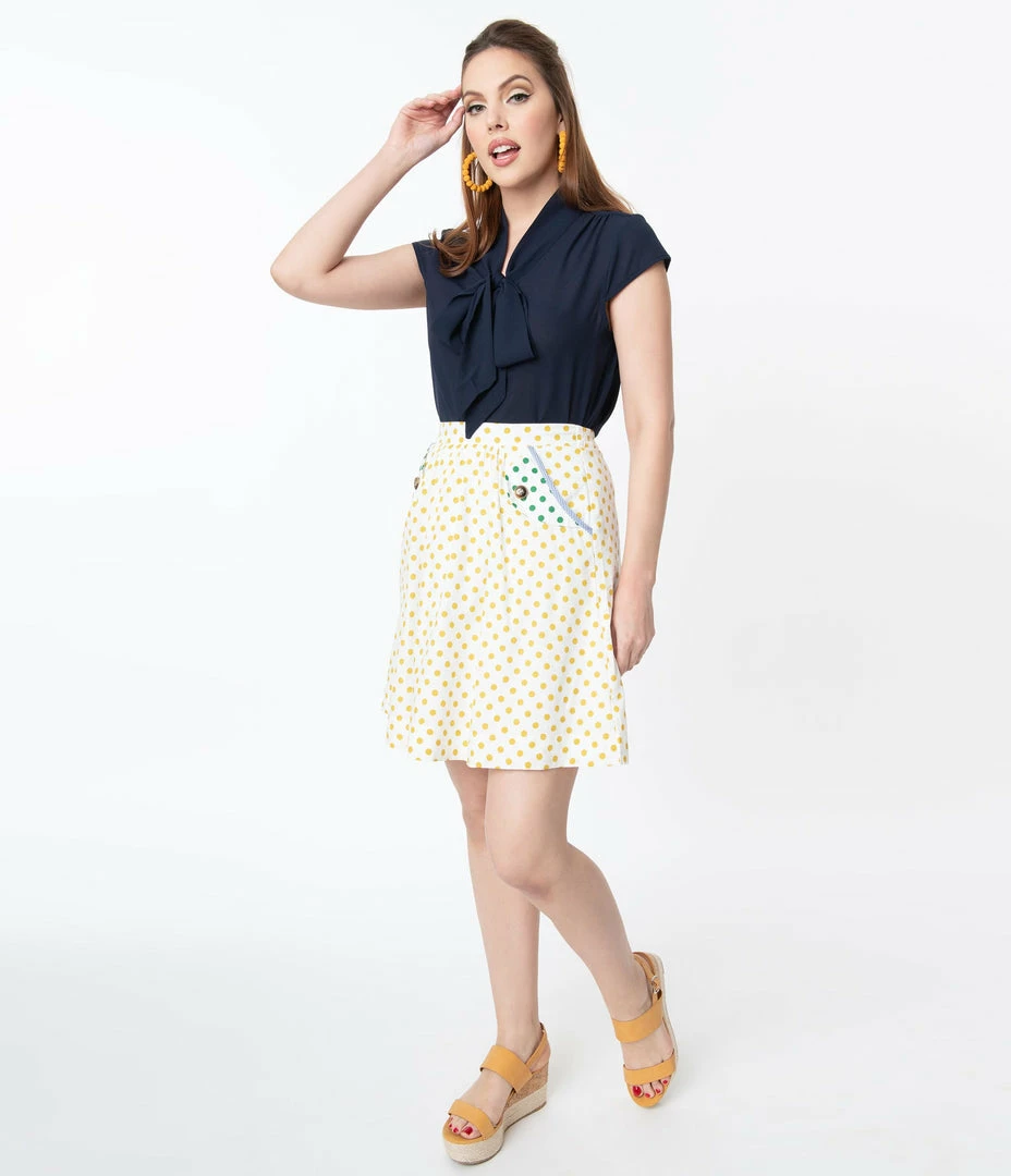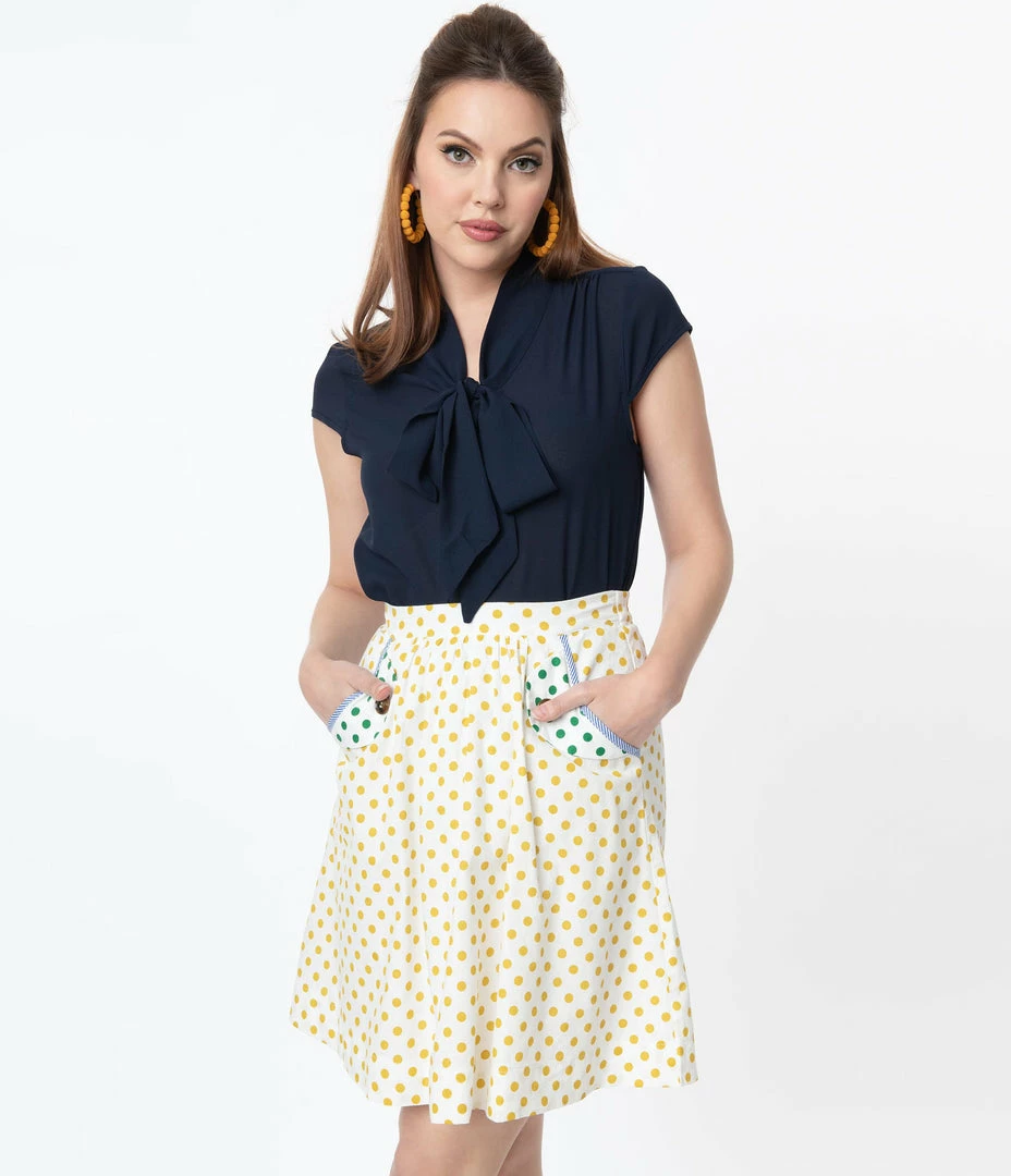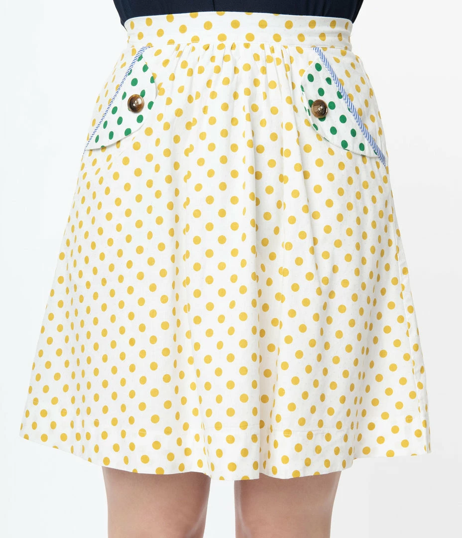 Coupon ๐ Tulip.B Retro Ivory Swiss Dot & Mustard Polka Dot Flare ๐ Skirt ๐งจ