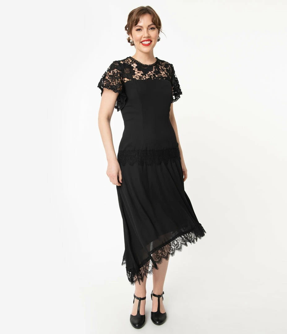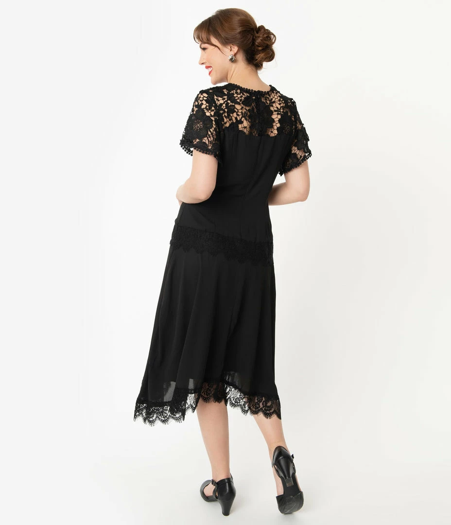 Top 10 ✔️ Unique Vintage 1920s Black Lace Marmande Flapper 👗 Dress Clothing 👍