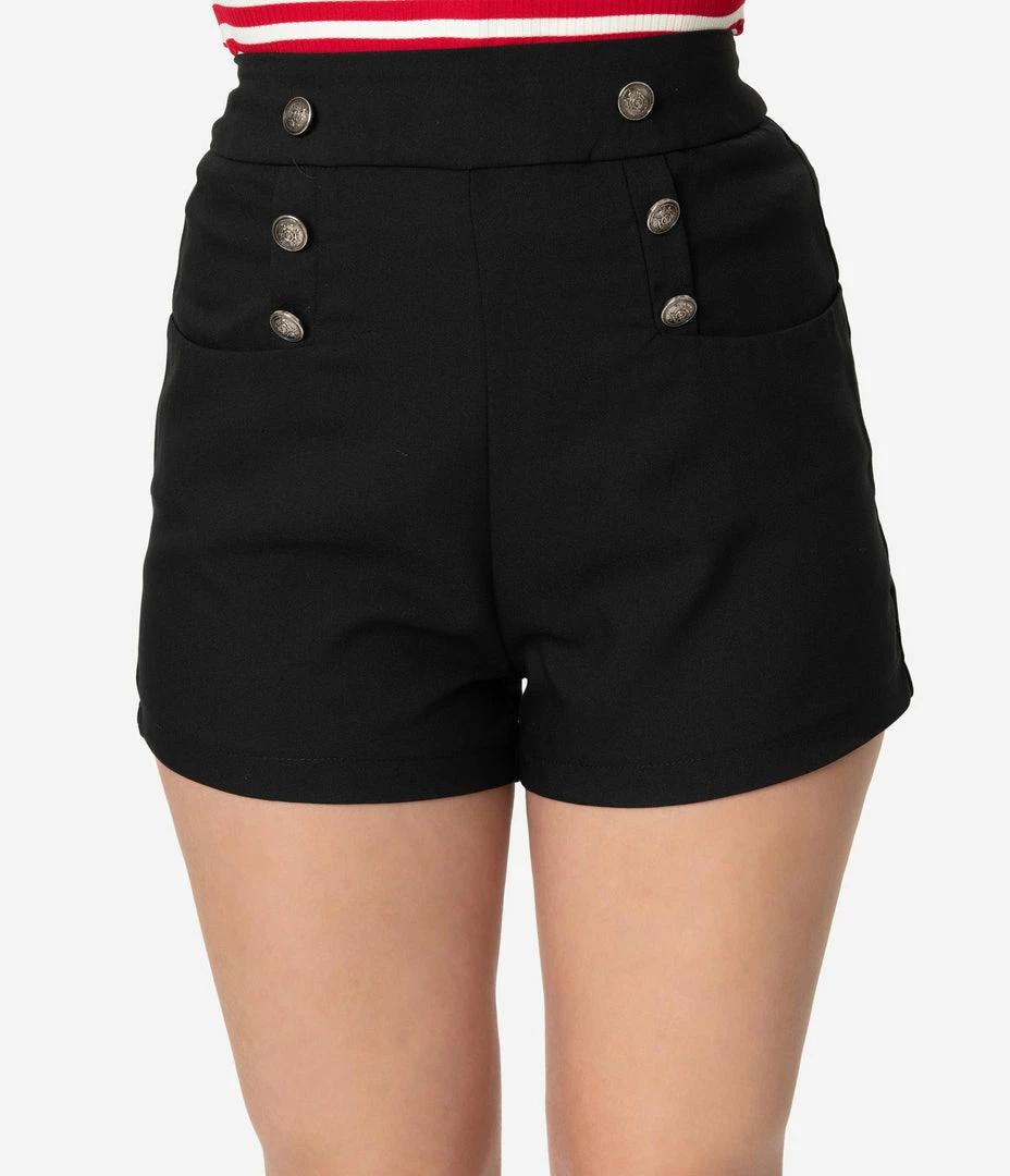 Best deal ๐งจ Unique Vintage 1940s Style Black High Waist Sailor Debbie Shorts Sale ๐ฏ