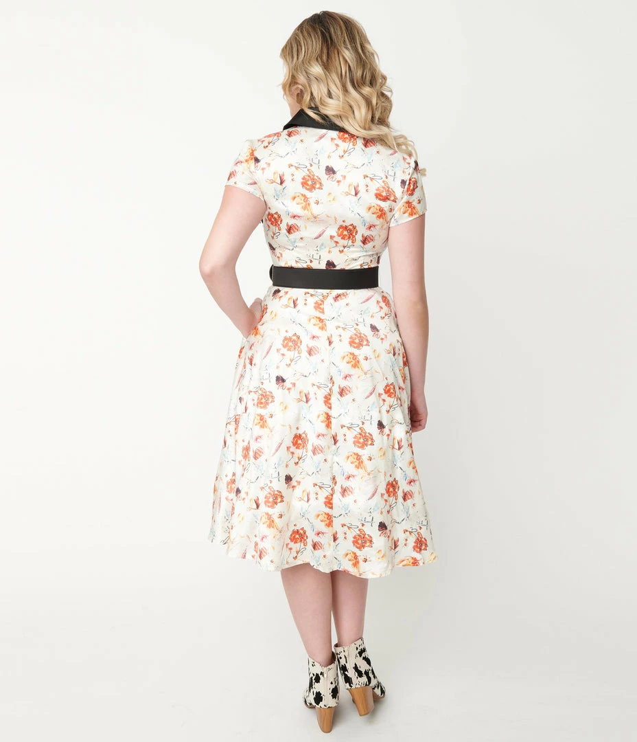 Best Sale ๐ Unique Vintage 1950s Cream & Floral Print Madeline Swing ๐ Dress ๐