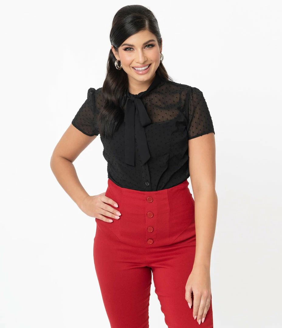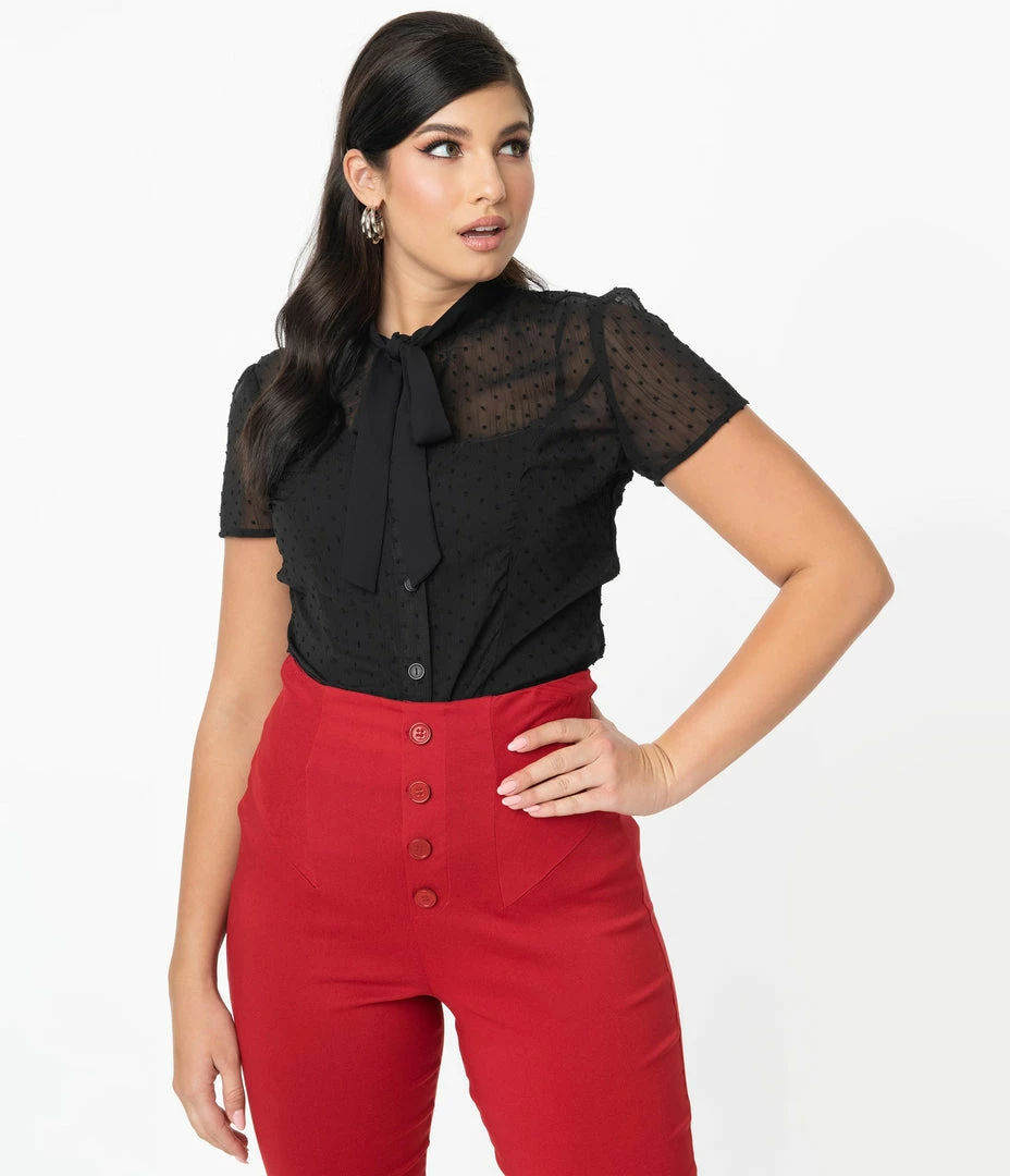 Outlet π Unique Vintage Black Clip Dot Elsie Blouse π