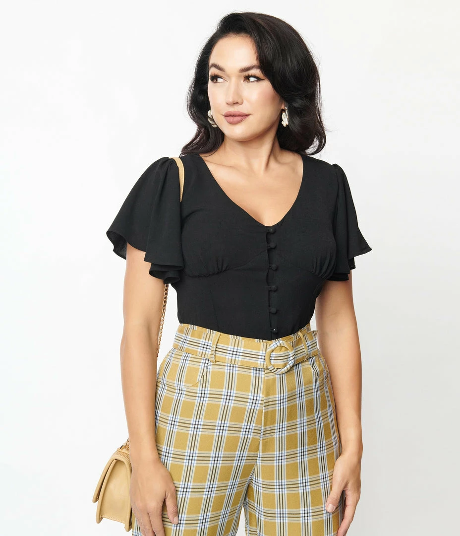 Coupon ๐ Unique Vintage Black Flutter Sleeve Blouse Trending โจ