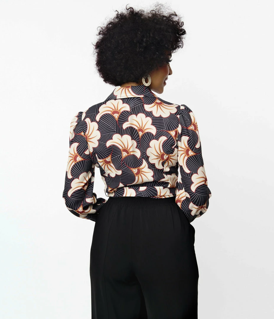 Flash Sale 🔥 Unique Vintage Black & Ivory Deco Floral Print Bodysuit Trending ⭐