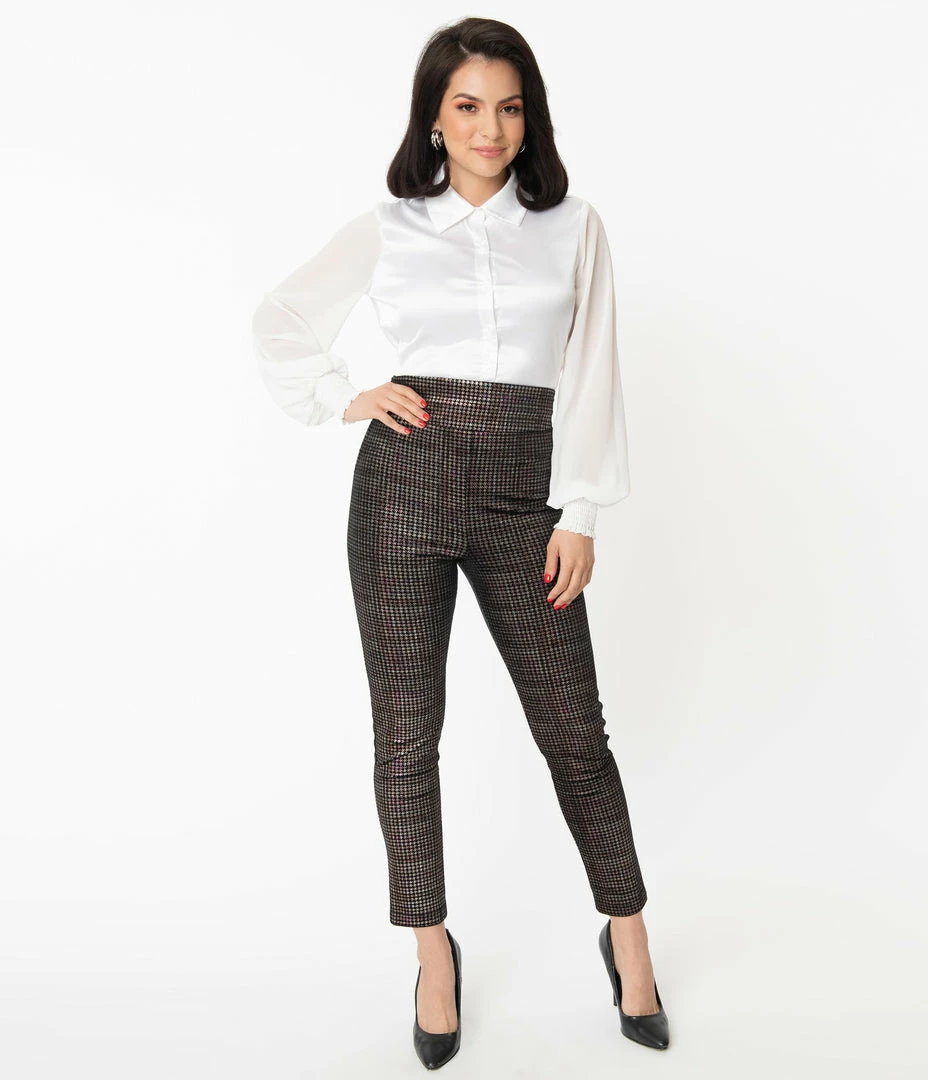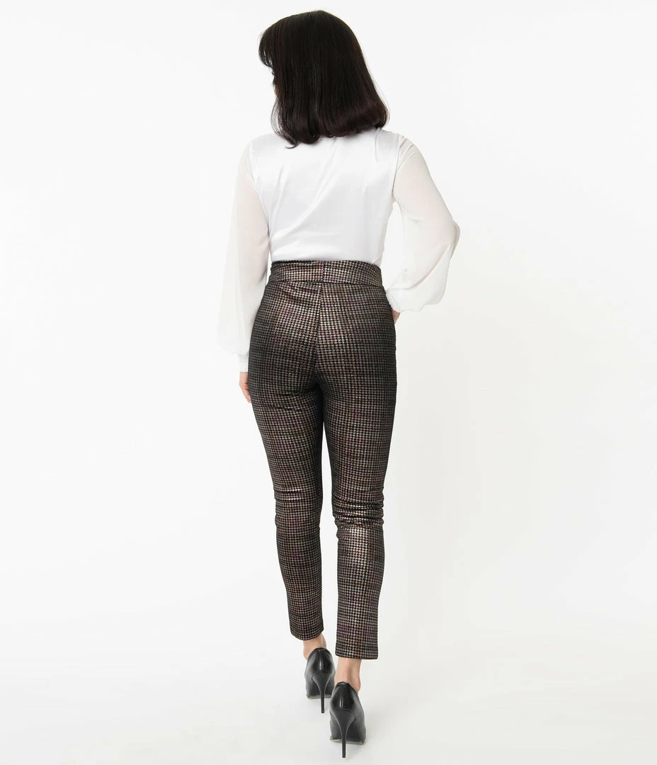 Deals โ Unique Vintage Black & Metallic Houndstooth Rizzo Cigarette Pants Sale โ๏ธ