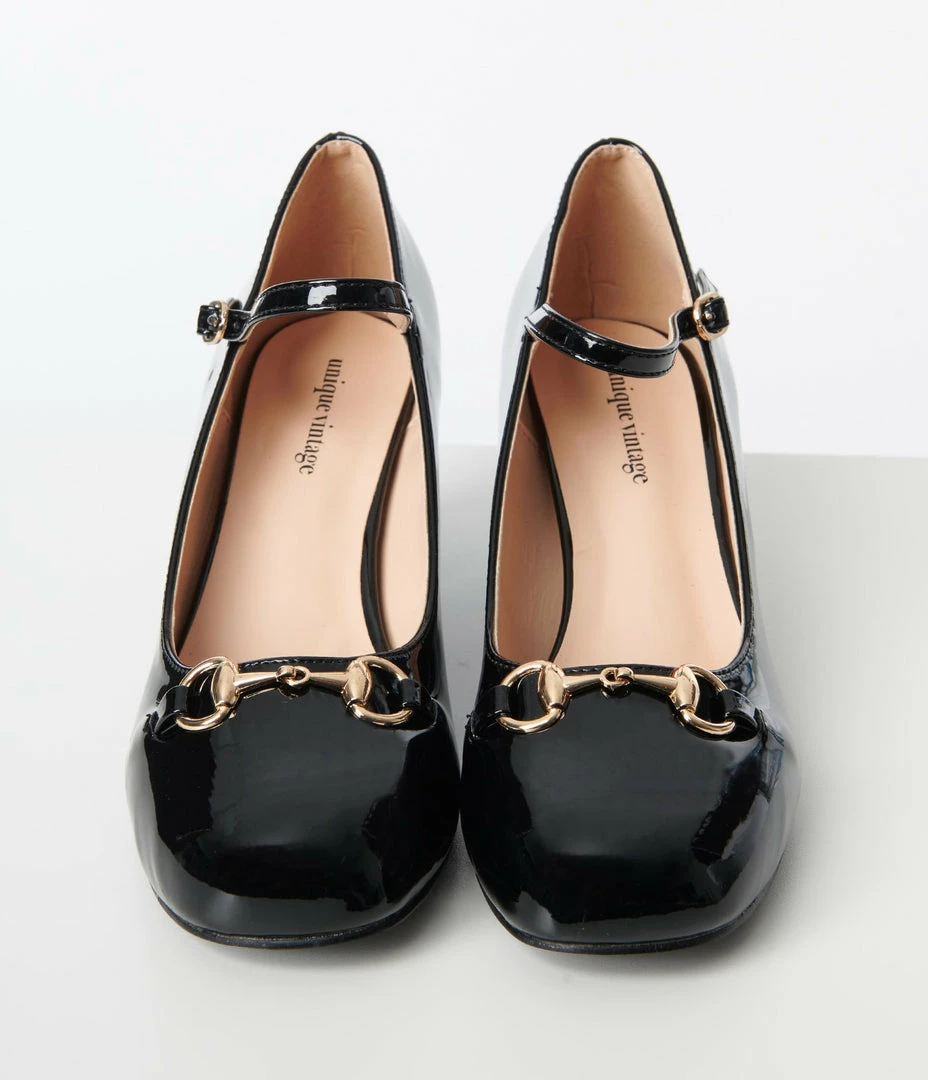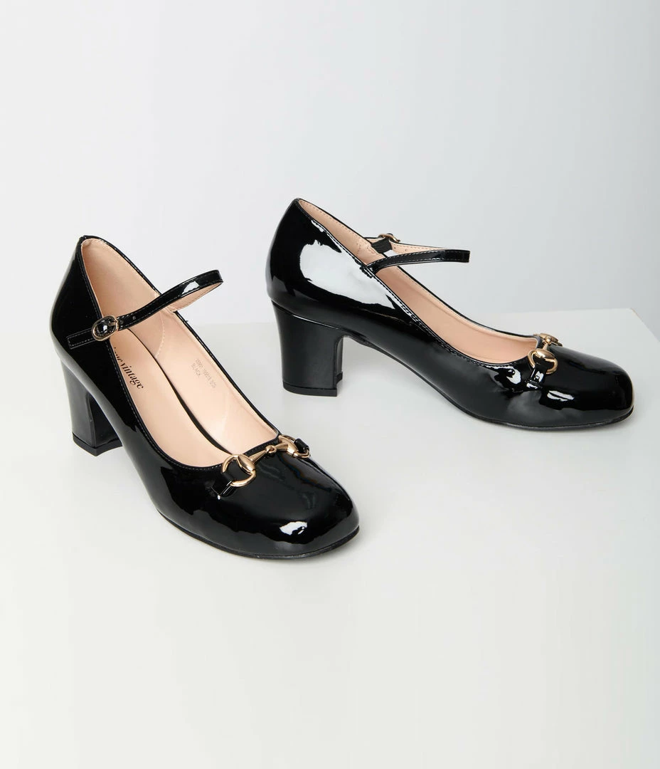 Discount ⌛ Unique Vintage Black Patent Leatherette Mary Jane 👠 Heels 🔔