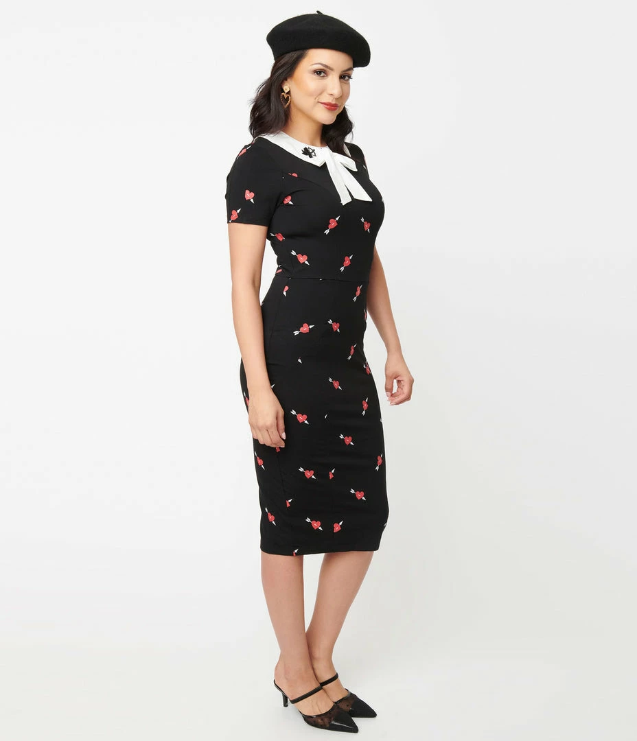 New ✨ Unique Vintage Black & Pierced Heart Print Renata Pencil 👗 Dress 😀