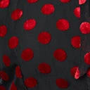 A darling blouse crafted in a lightweight sheer black chiffon that dances with red metallic polka dots throughout. Outfitted with a button up front, attached neck ties, and button cuffs.