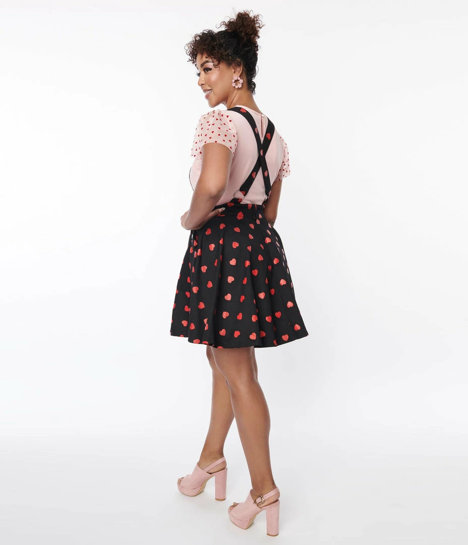 Top 10 😉 Unique Vintage Black & Red Hearts Brionne Pinafore 👗 Skirt 🌟