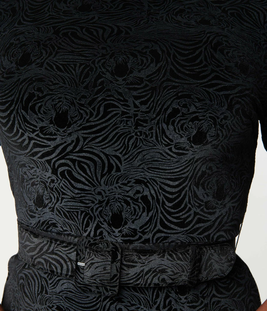 Best Pirce ๐ Unique Vintage Black Tiger Embossed Velvet Jaqueline Pencil ๐ Dress Clothing ๐