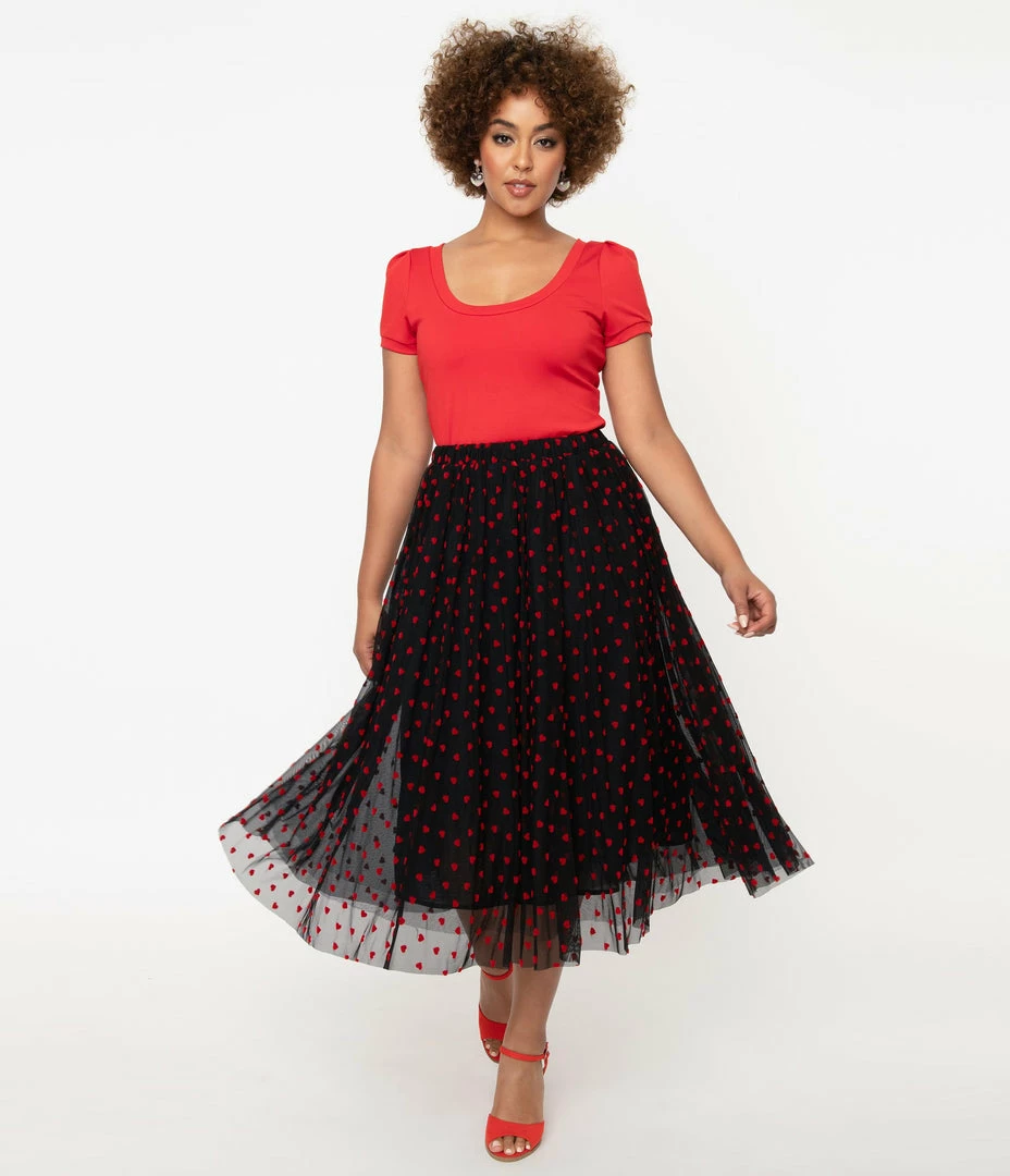 Best deal 🤩 Unique Vintage Black Tulle & Red Swiss Dot Hearts Hilty 👗 Skirt Sale 🎁