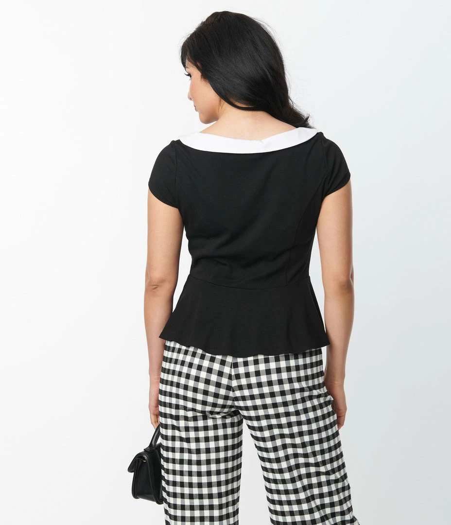 Flash Sale ๐ฏ Unique Vintage Black & White Collar Peplum Top New Arrivals! ๐