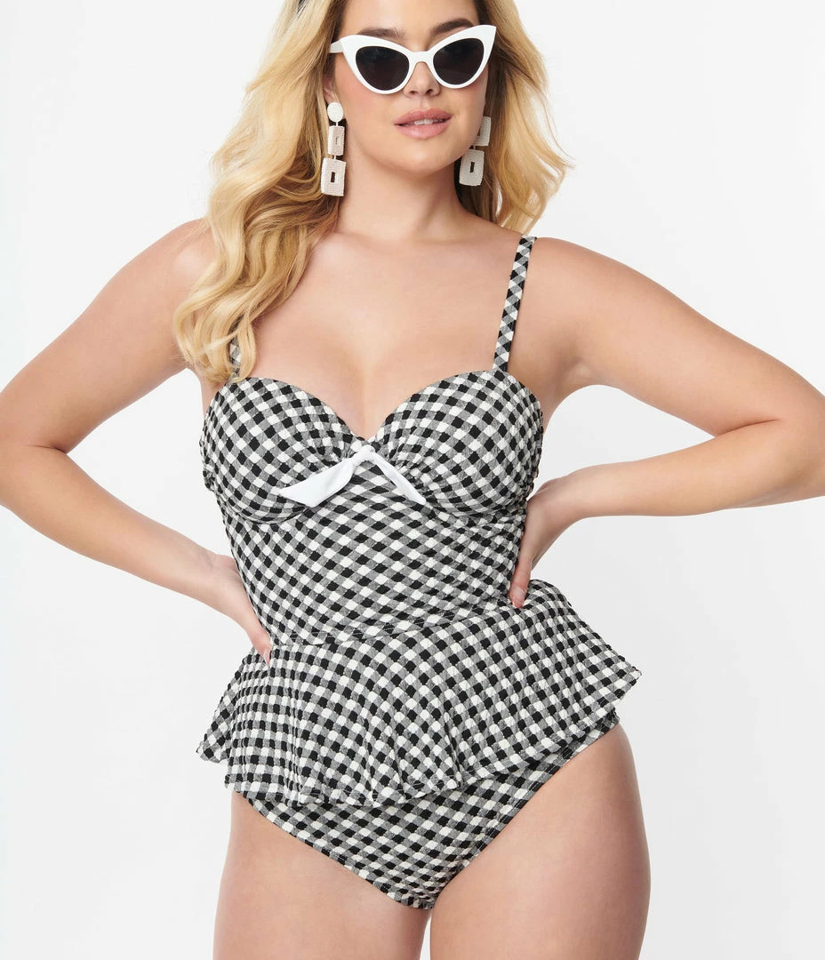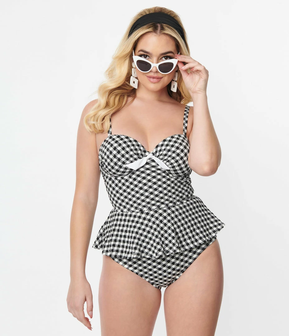 Best deal 👏 Unique Vintage Black & White Gingham Daphne Swim Bottoms New Arrivals! 🥰