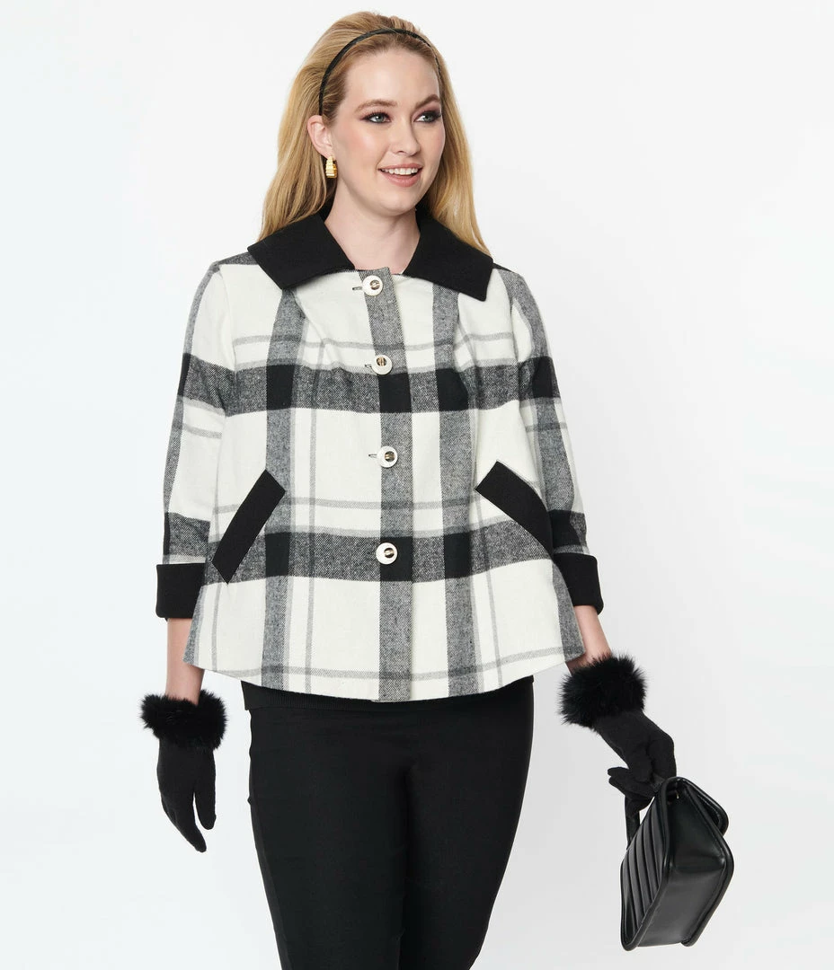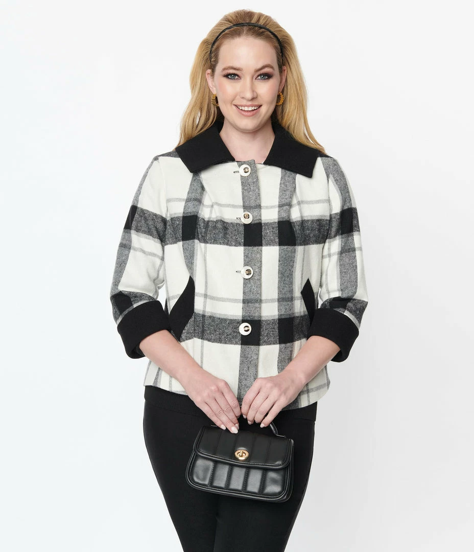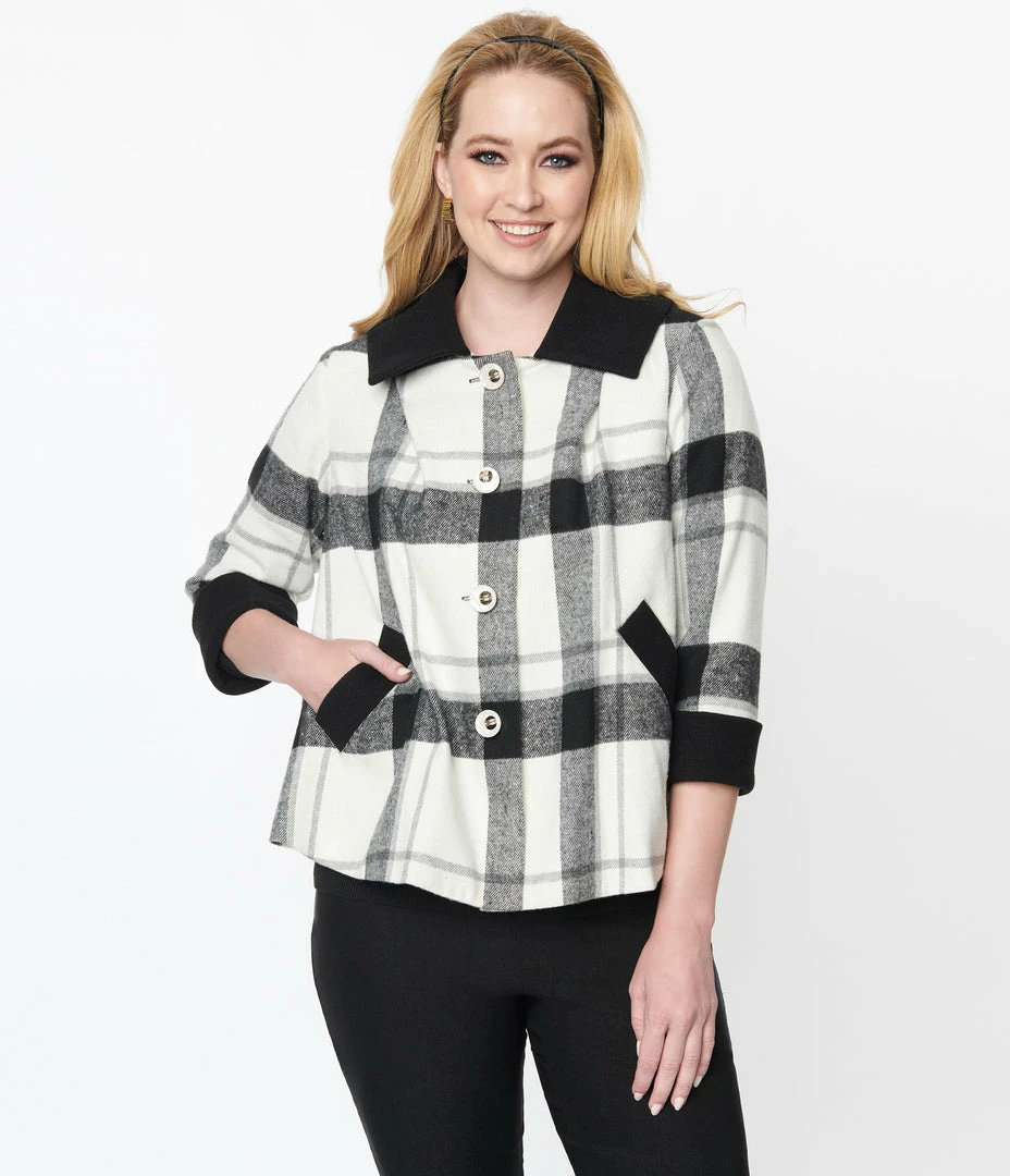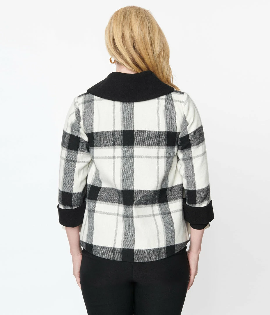 Hot Sale 😀 Unique Vintage Black & White Plaid Ahoy There Short Swing 🧥 Coat 😀