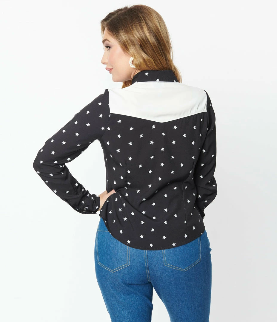 Top 10 ⭐ Unique Vintage Black & White Star Print Western Blouse 🛒