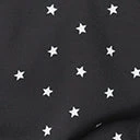 This gorgeous blouse is crafted in a smooth woven fabric that features ivory stars printed throughout a black backdrop. Outfitted with a button up front, button cuffs, and a solid white yoke.