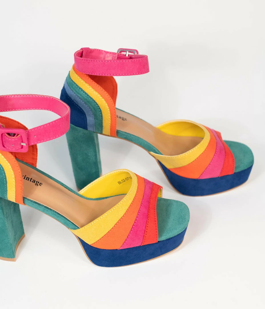 Deals π Unique Vintage Brand Unique Vintage Rainbow Suede Peep Toe Pumps π