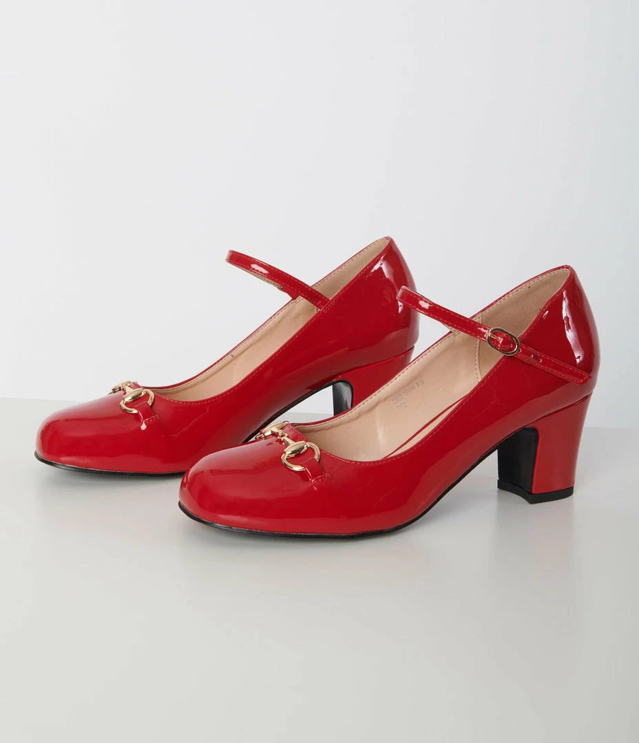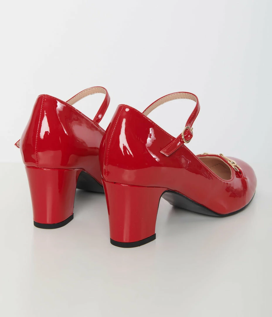 Flash Sale 🤩 Unique Vintage Brand Unique Vintage Red Patent Leatherette Mary Jane 👠 Heels ⭐
