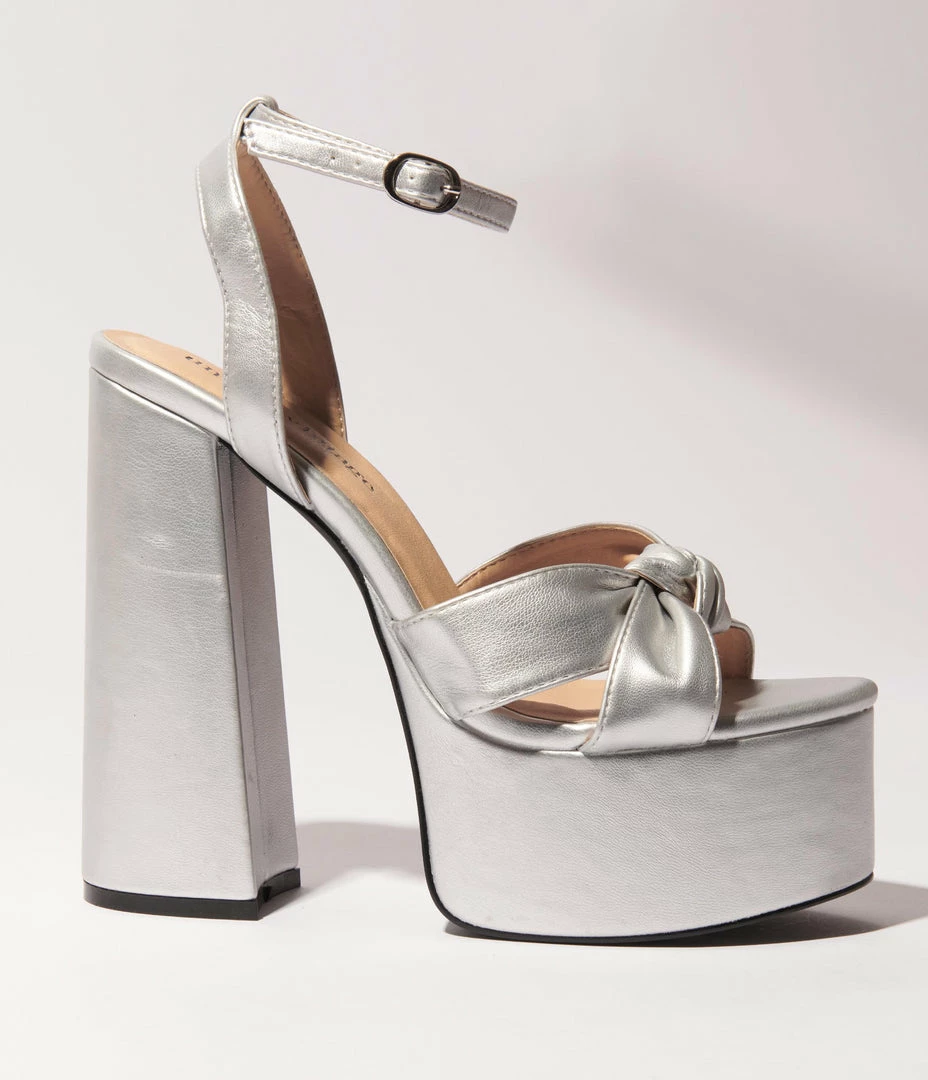 New 🎁 Unique Vintage Brand Unique Vintage Silver Leatherette Bow Platform Heel 🌟