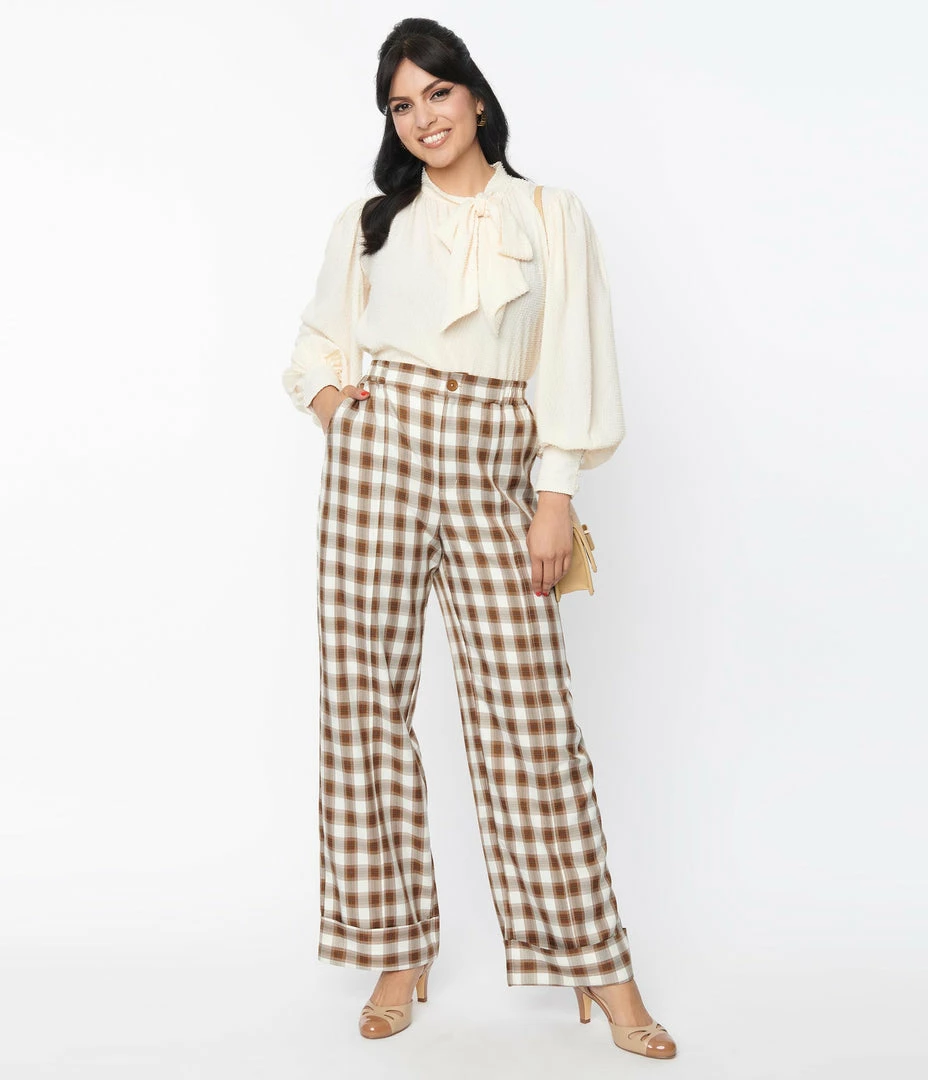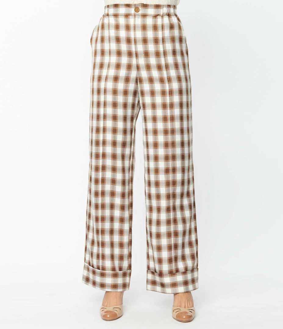 Best reviews of โ๏ธ Unique Vintage Brown & Ivory Plaid Wide Cuff Pants ๐งจ