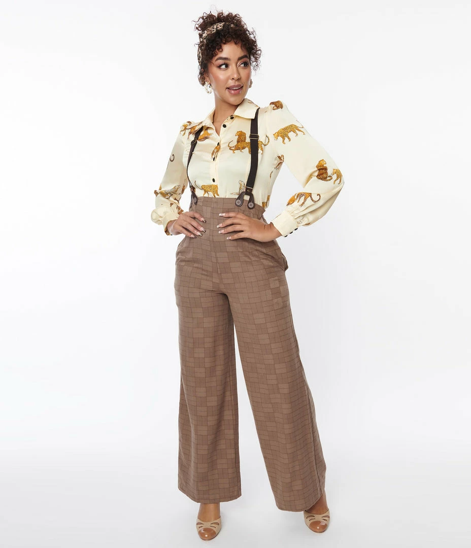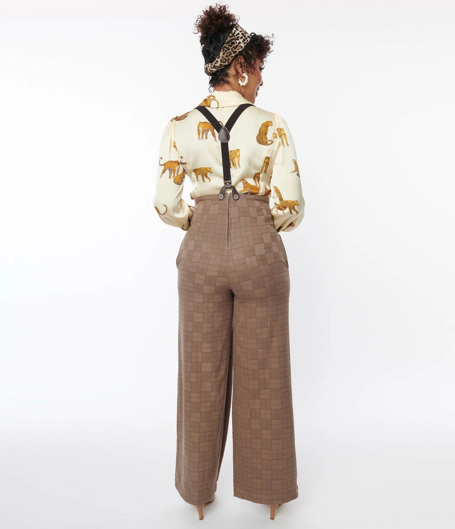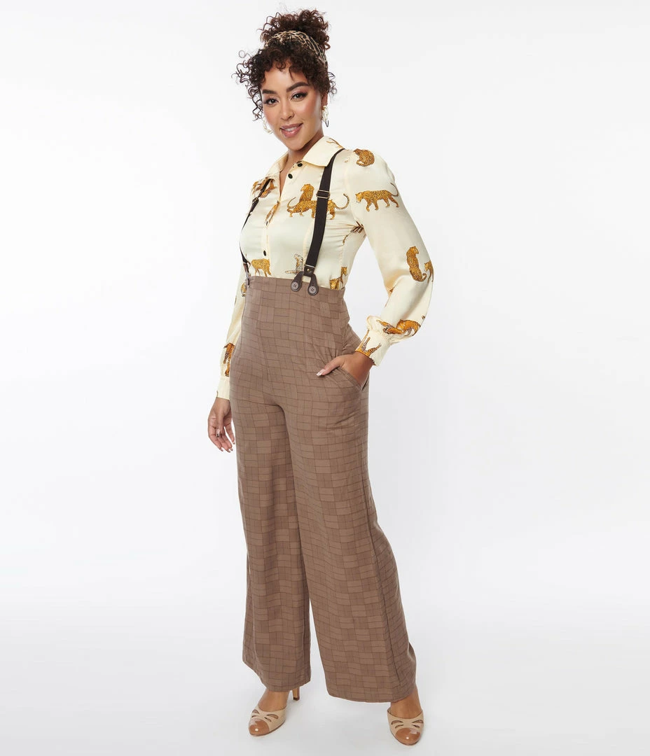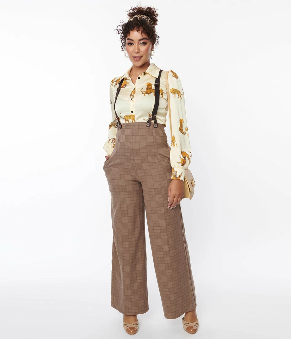 Wholesale ๐ Unique Vintage Brown Windowpane Plaid Suspender Pants Trending โ๏ธ