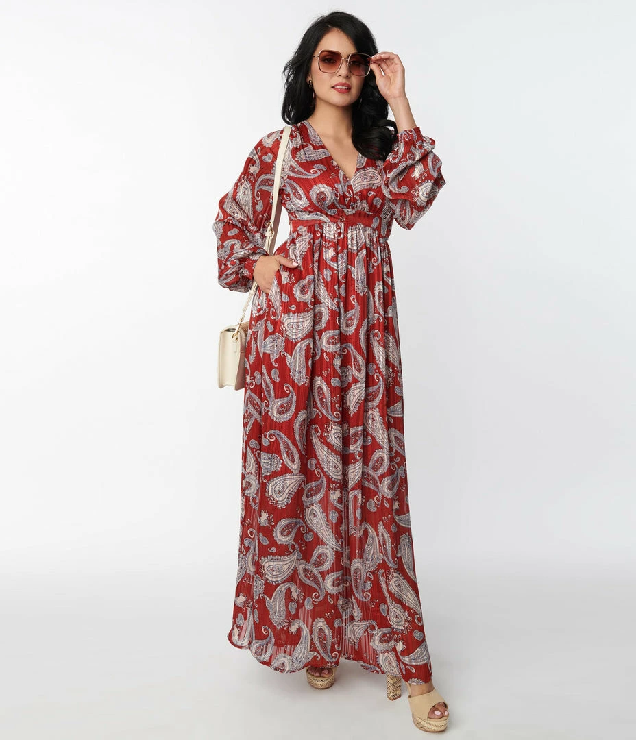 Discount โญ Unique Vintage Burgundy Paisley Buttercup Maxi ๐ Dress ๐ฏ