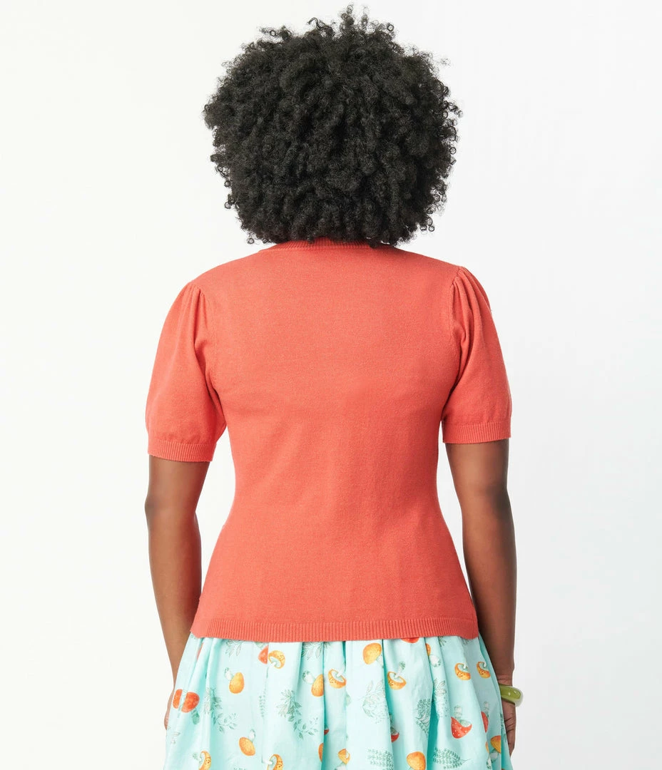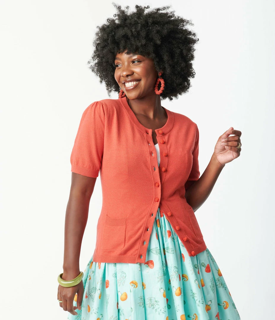 As soft as your heart, darling! This sweet burnt orange cardigan from Unique Vintage is crafted in a marvelous soft sweater knit. The Telluride Cardigan features a button up front and a modest scoop neckline, framed by charming short sleeves and complete with front pockets!