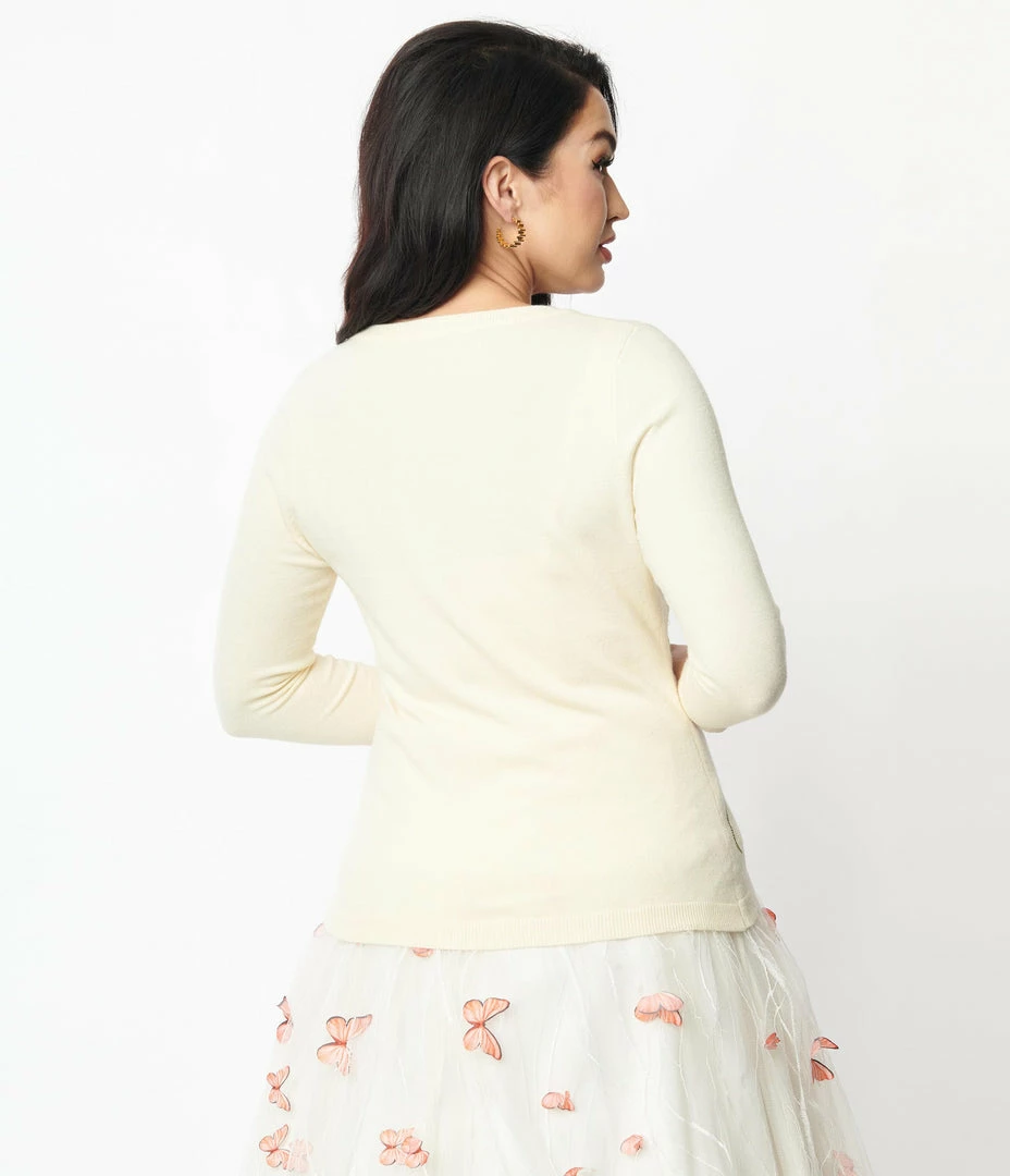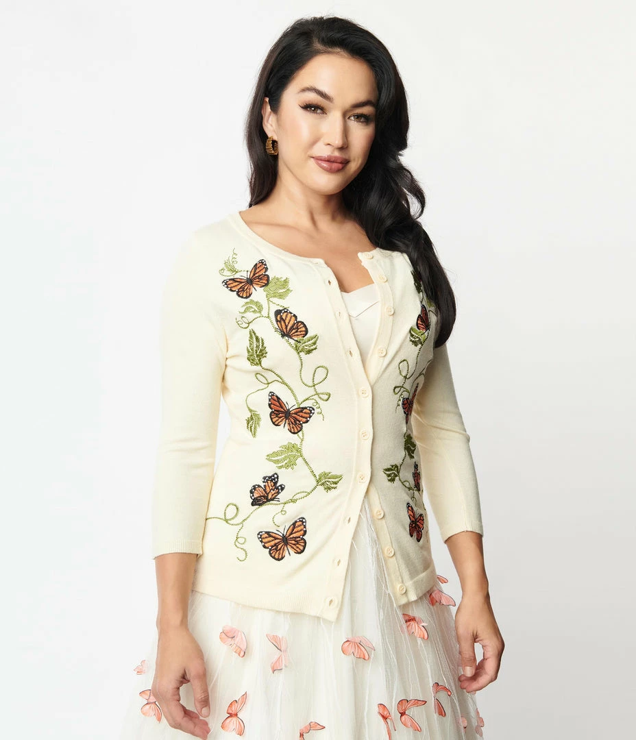 Best reviews of โจ Unique Vintage Cream & Butterfly Embroidered Bookworm Cardigan Clothing ๐