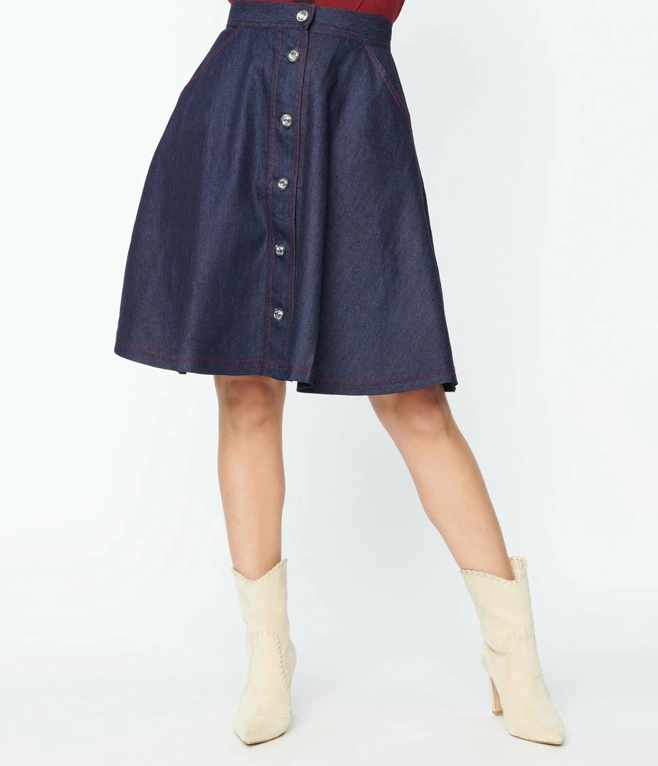 Best deal 😀 Unique Vintage Dark Denim Blue Swing 👗 Skirt 🥰