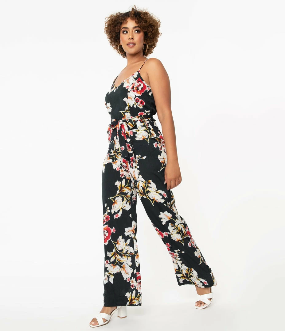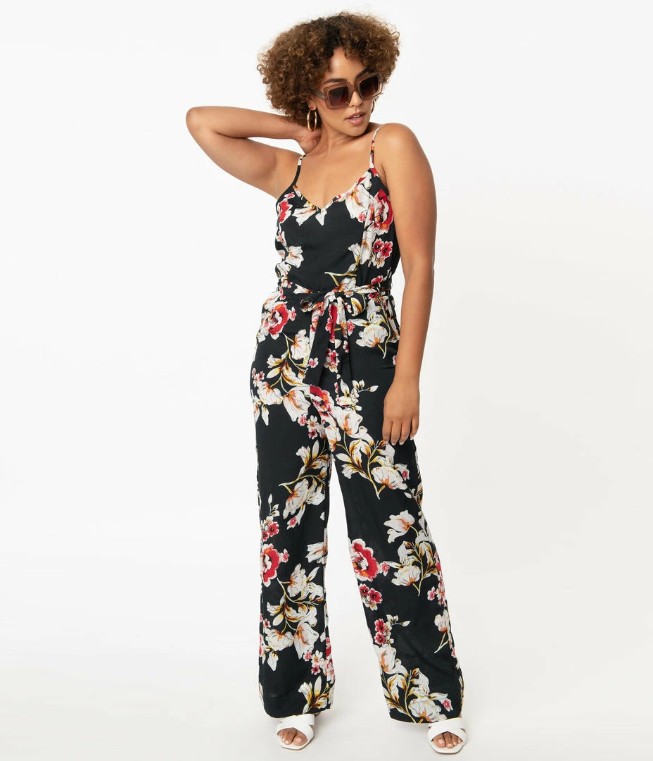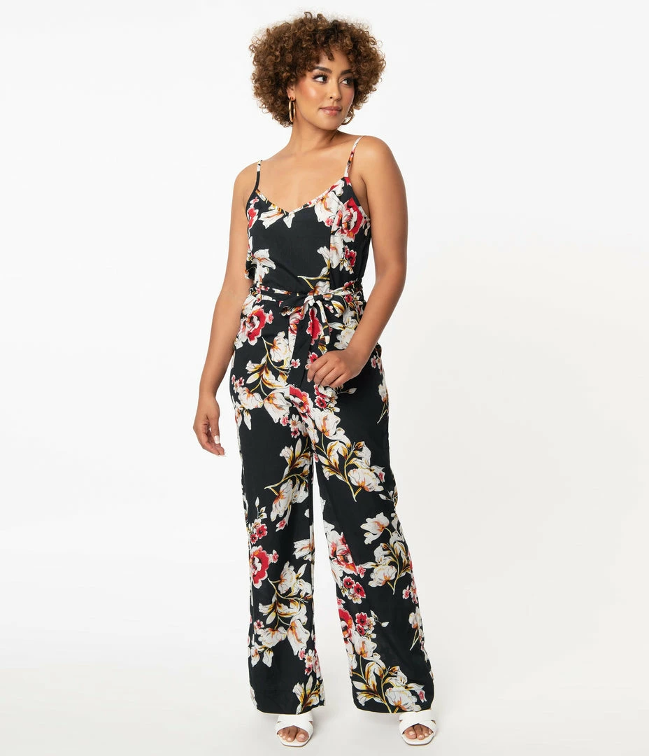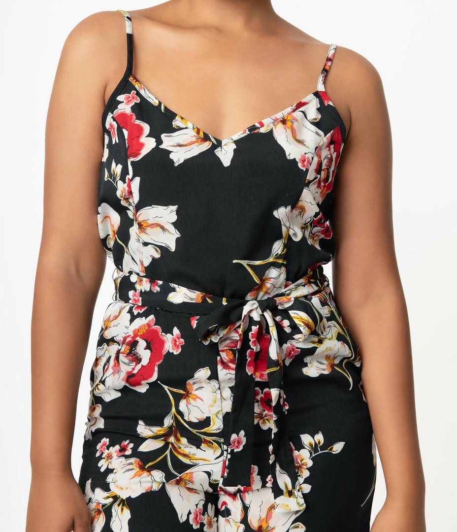 Brand new ⌛ Unique Vintage Dark Green & Red Floral Print Raleigh Jumpsuit New Arrivals! ⭐