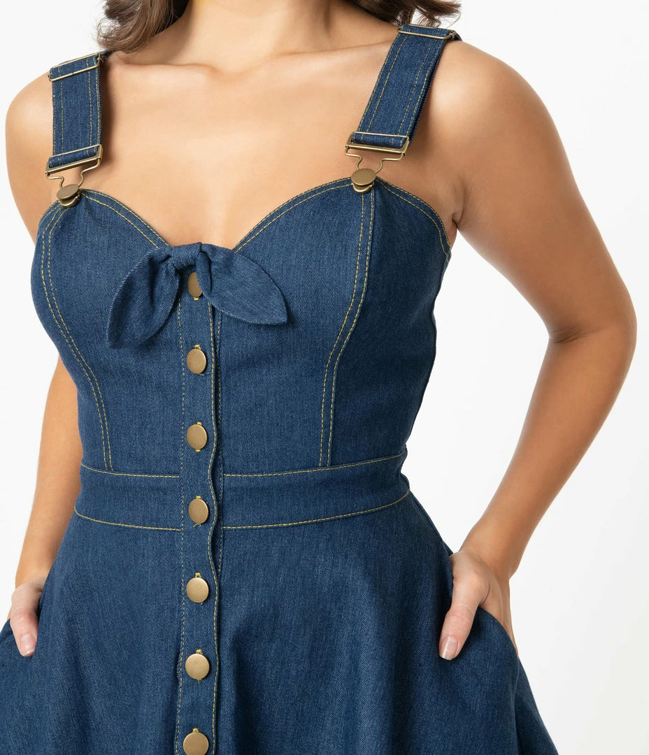 Deals ⭐ Unique Vintage Denim Blue Vaughn Fit & Flare 👗 Dress 🌟