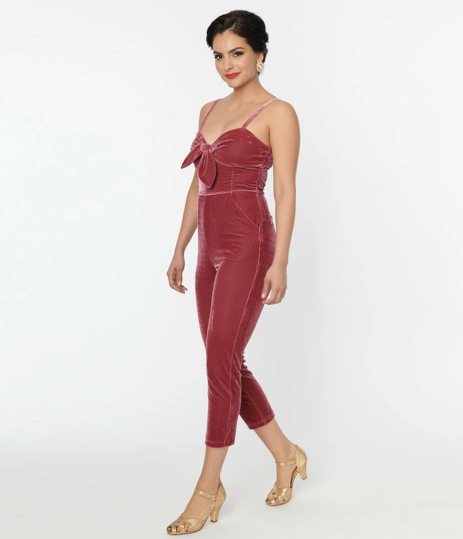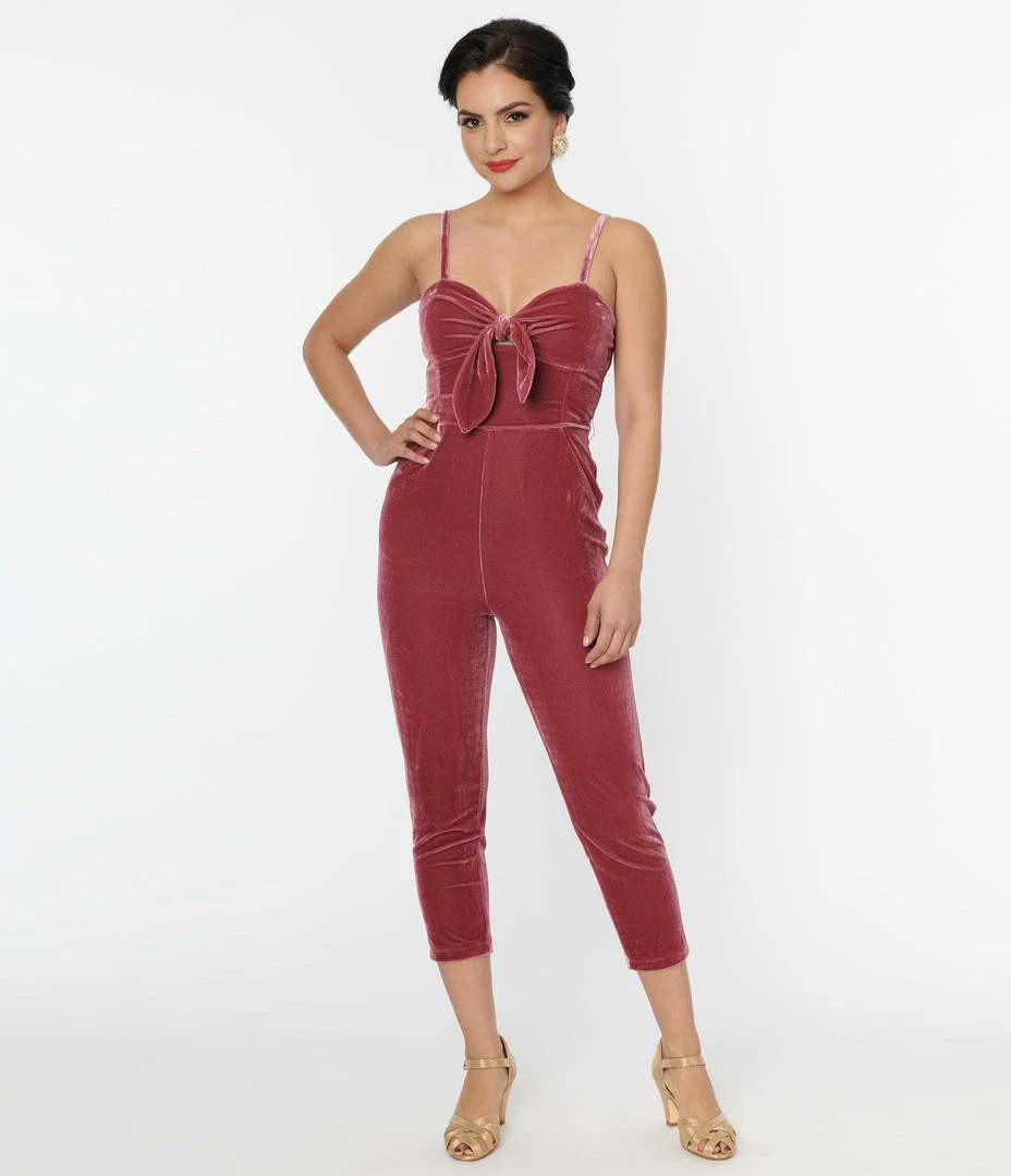Best reviews of โญ Unique Vintage Dusty Rose Velvet Cropped Jumpsuit New Arrivals! โค๏ธ