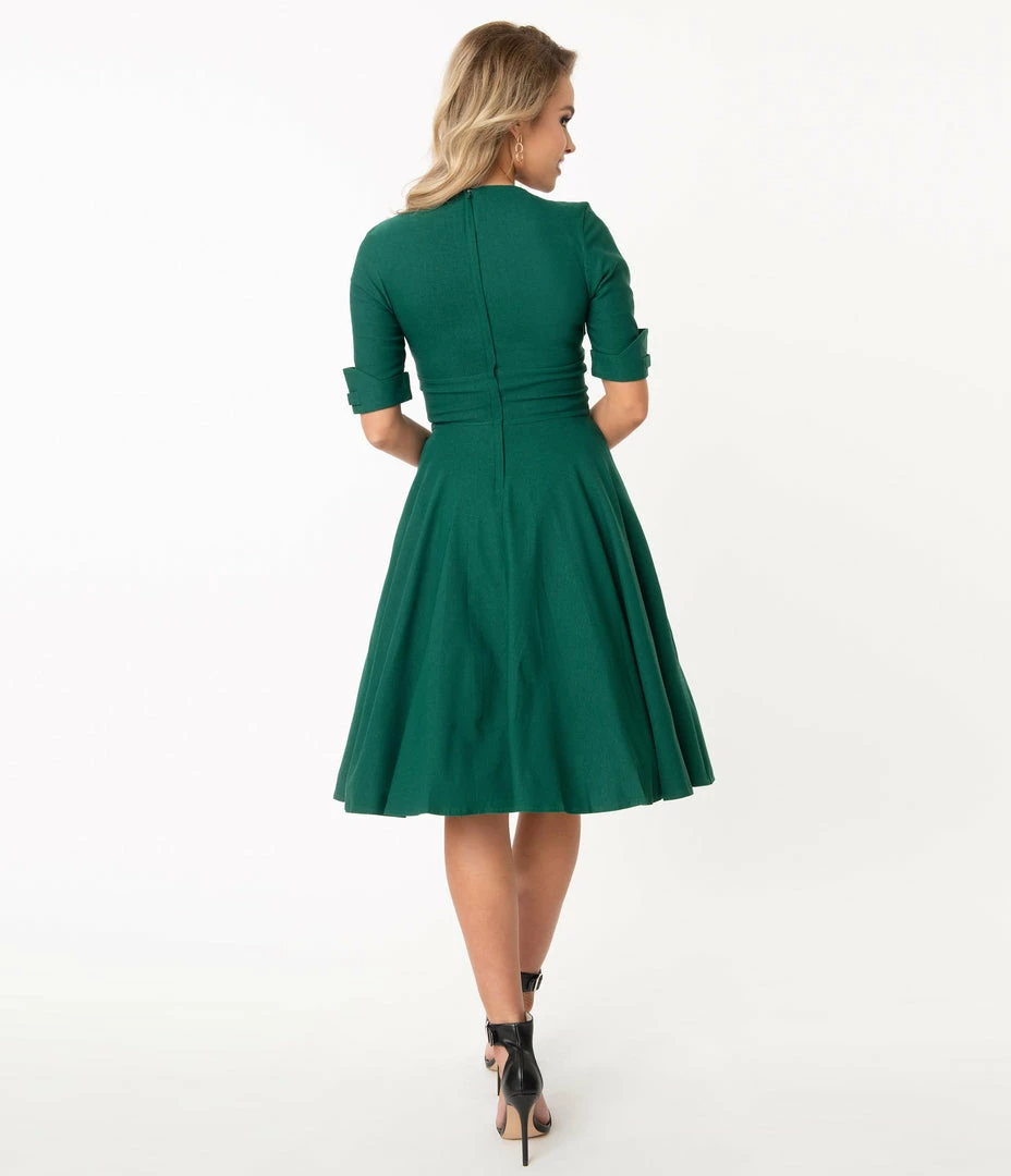 Promo ๐ Unique Vintage Emerald Green Delores Swing ๐ Dress With Sleeves โ๏ธ