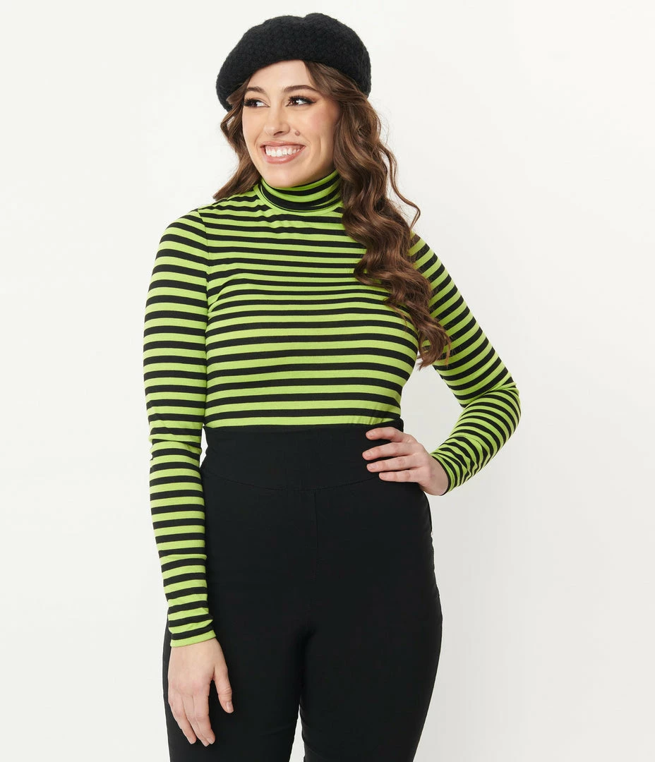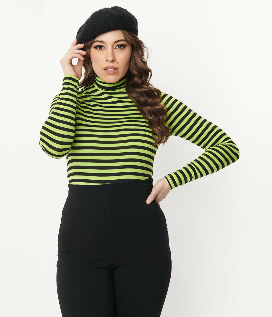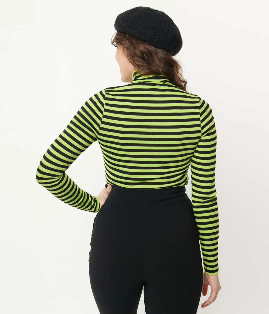 Promo ๐ Unique Vintage Green & Black Stripe Turtleneck Cherie Top Sale ๐
