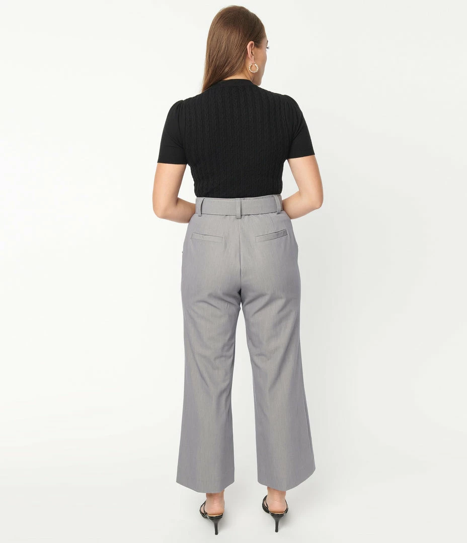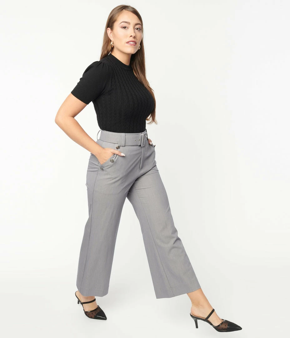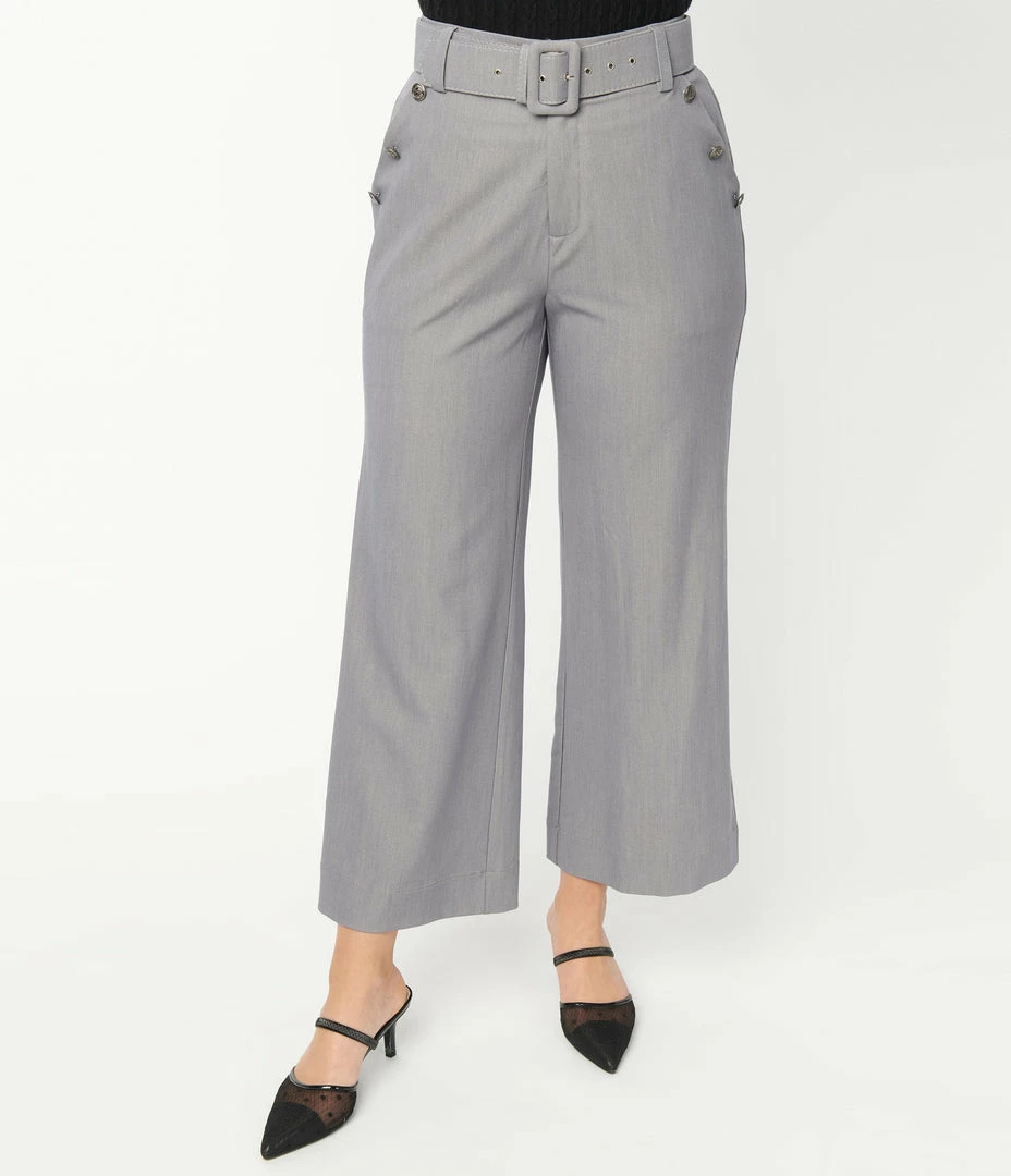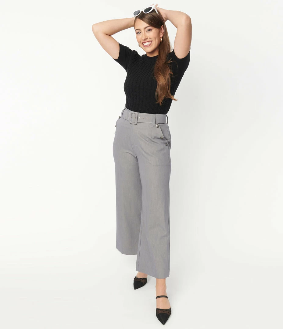 Wholesale 😍 Unique Vintage Grey Belted High Waist Katharine Pants Sale ⭐