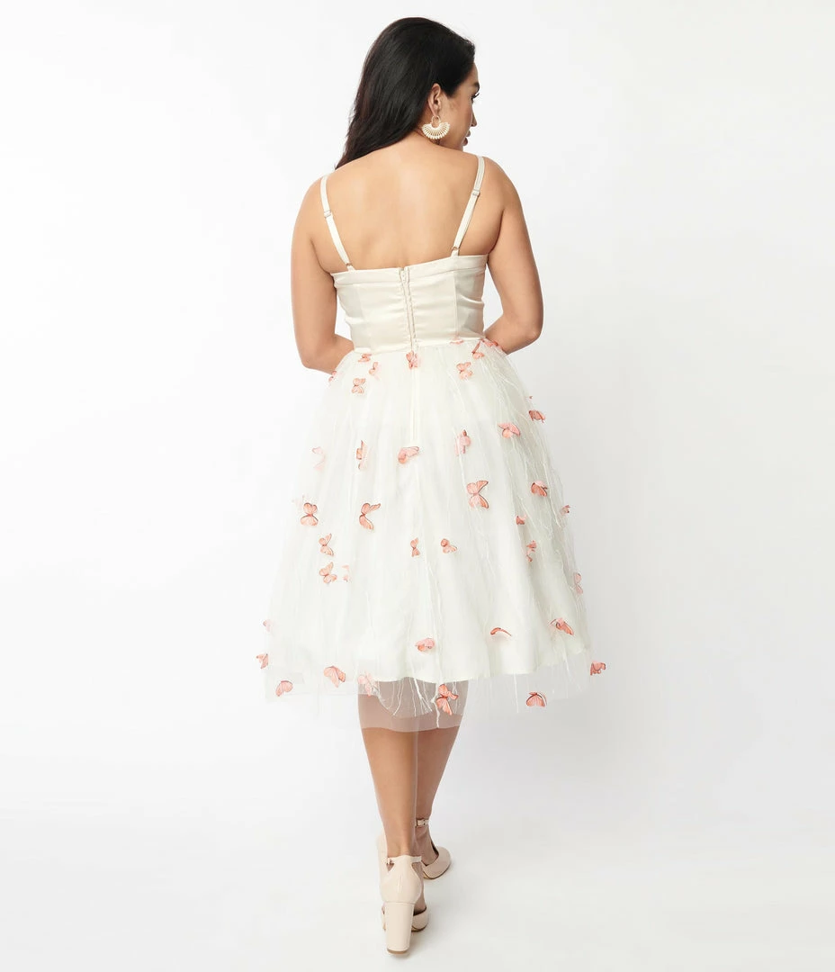 Cheap 👏 Unique Vintage Ivory & Butterfly Bertie Swing 👗 Dress ❤️