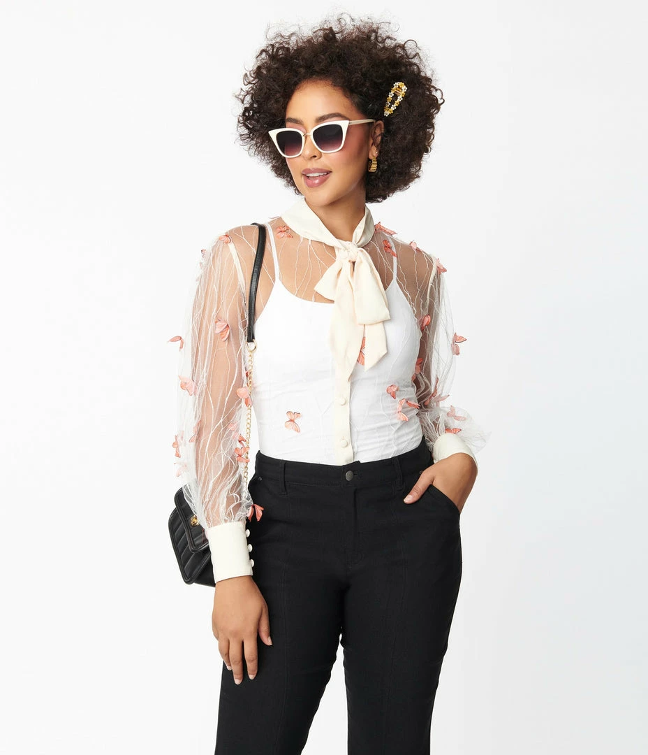 Cheap ๐ฏ Unique Vintage Ivory & Butterfly Mesh Gwen Blouse ๐