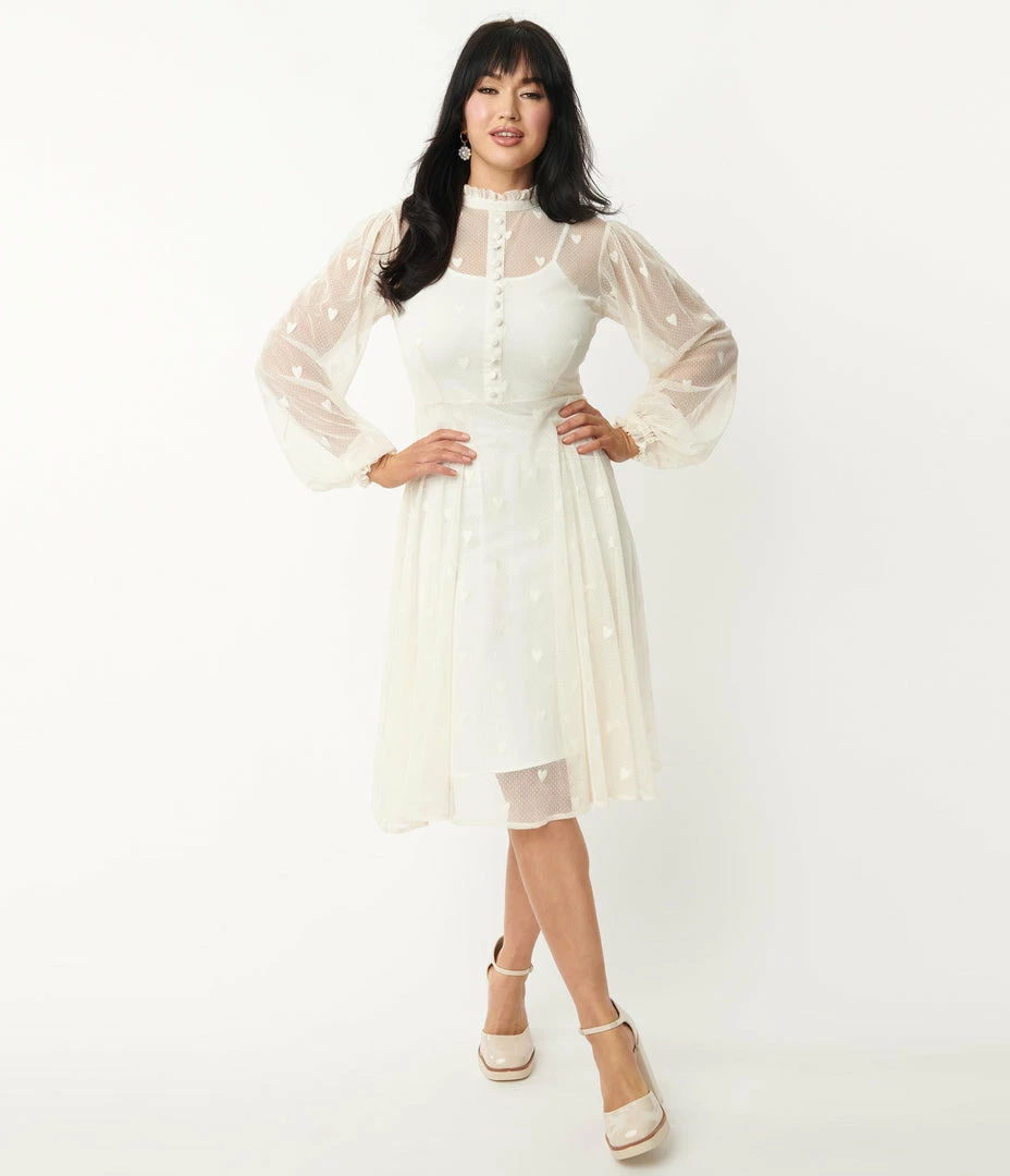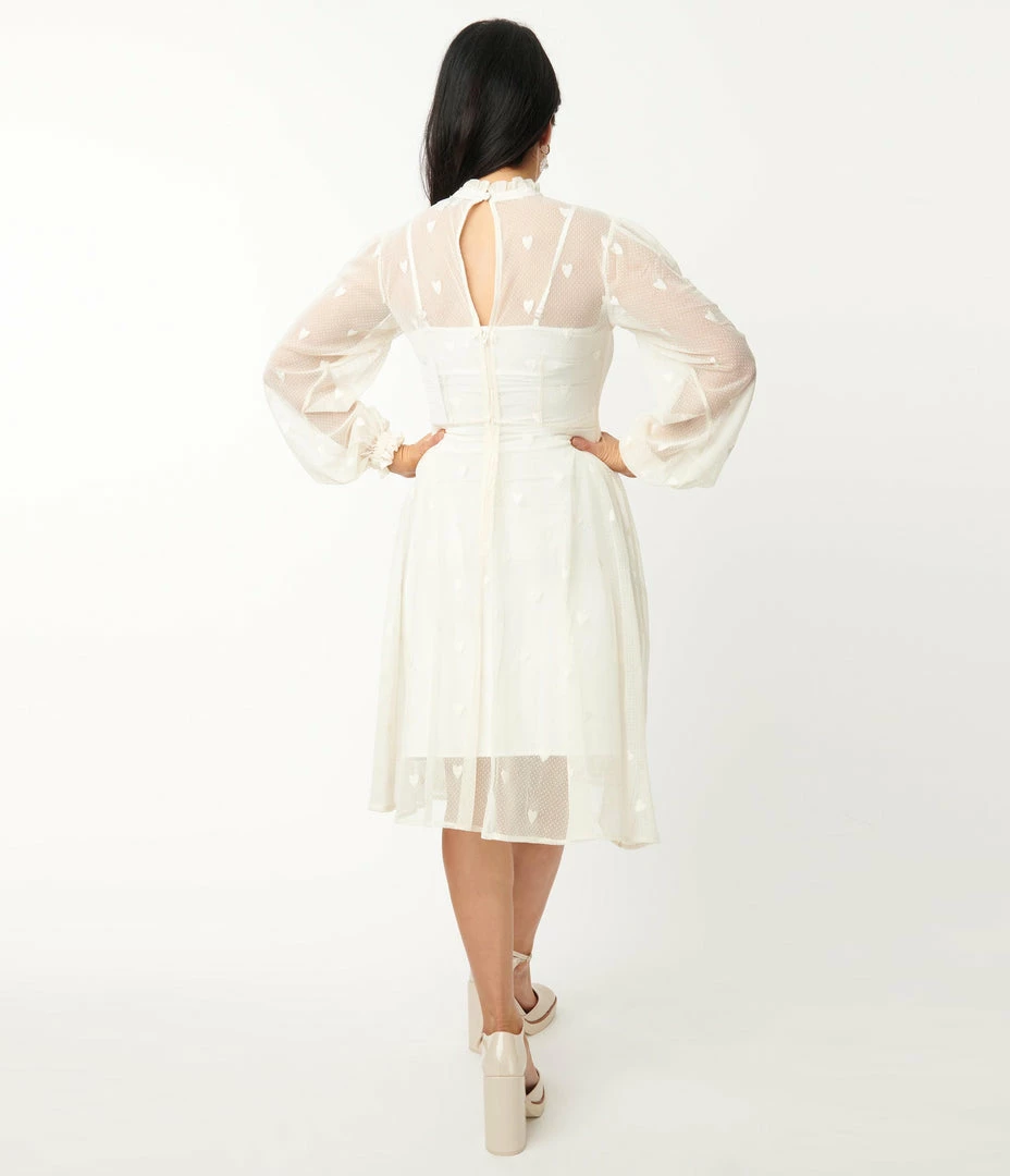 Top 10 ⌛ Unique Vintage Ivory Heart Mesh Leota Swing 👗 Dress 😉