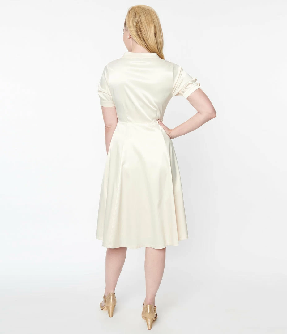Best Sale ✨ Unique Vintage Ivory Satin Button Bridal Swing 👗 Dress New Arrivals! 🌟