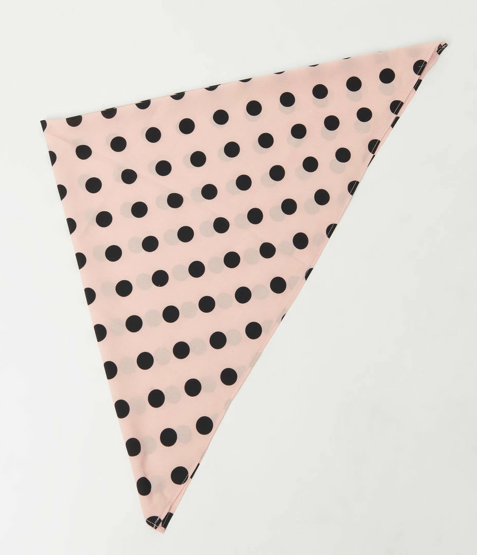 Discount ❤️ Unique Vintage Light Pink & Black Polka Dots Hair Scarf Hair Accessories ❤️