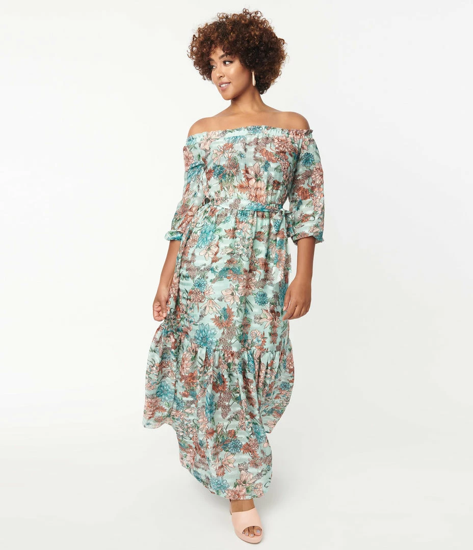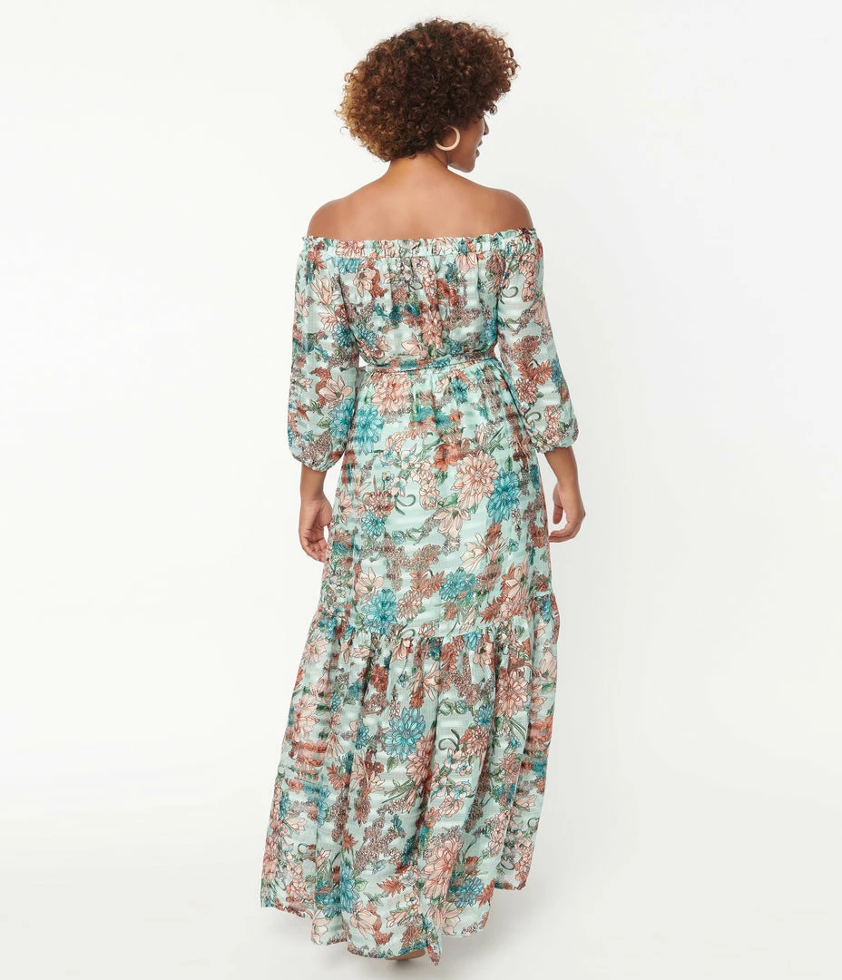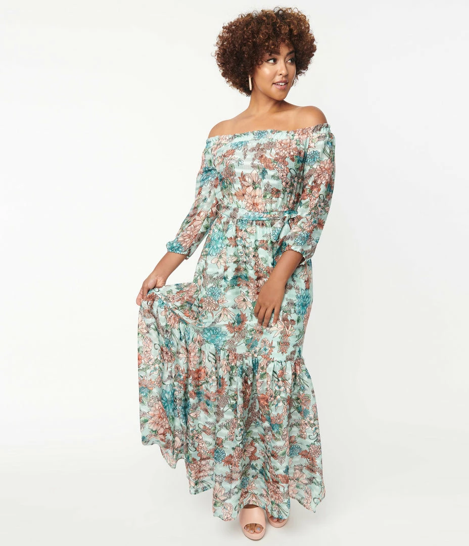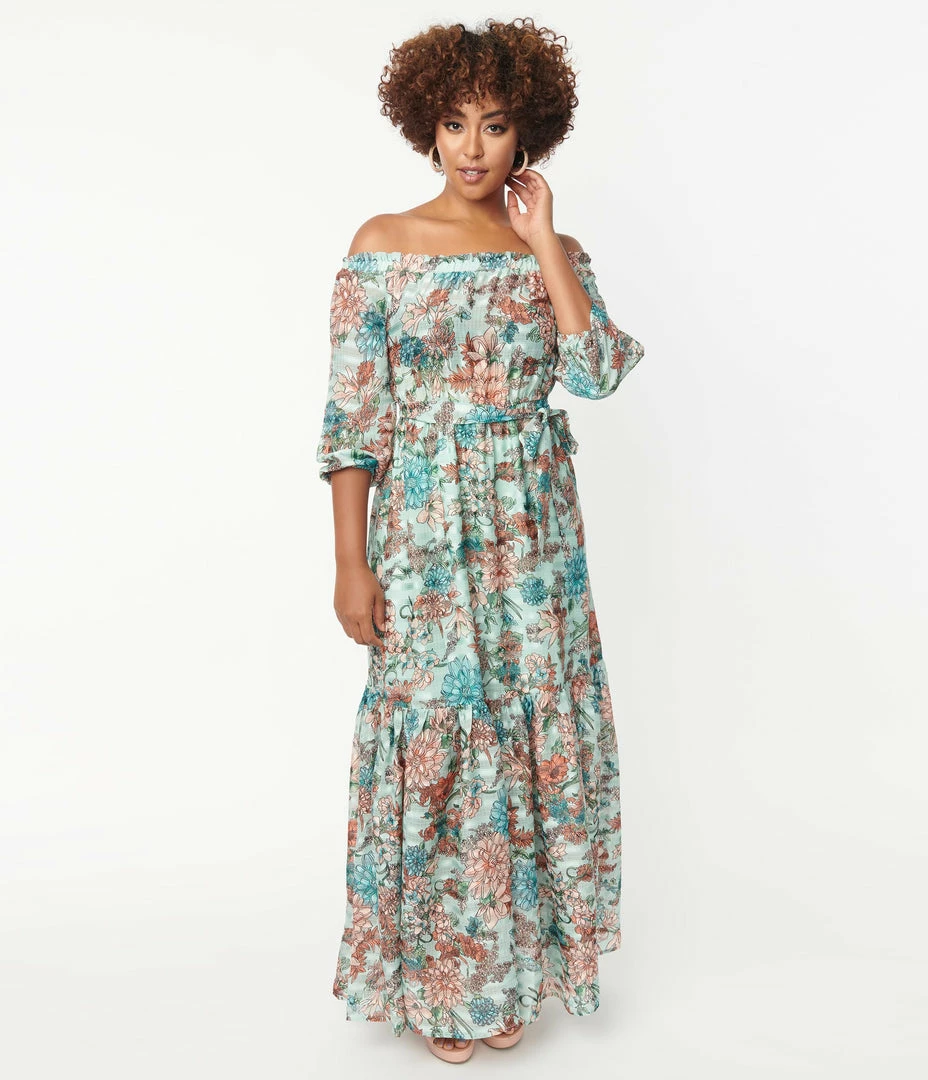 Best deal 💯 Unique Vintage Mint & Coral Floral Print Sweet Escape Maxi 👗 Dress Sale 😍