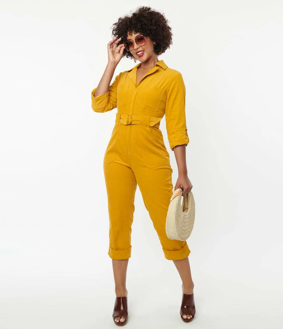 Wholesale ✔️ Unique Vintage Mustard Corduroy Trixie Jumpsuit Trending 🎁