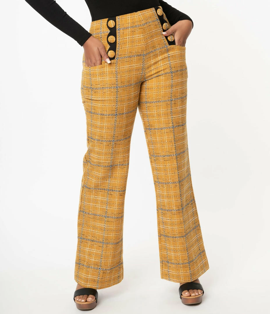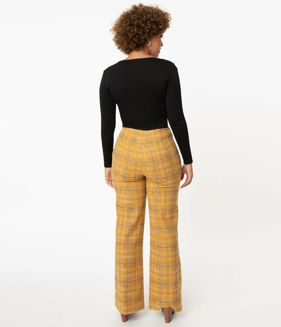Wholesale 👏 Unique Vintage Mustard Plaid Wide Leg Rogers Pants Sale ✔️