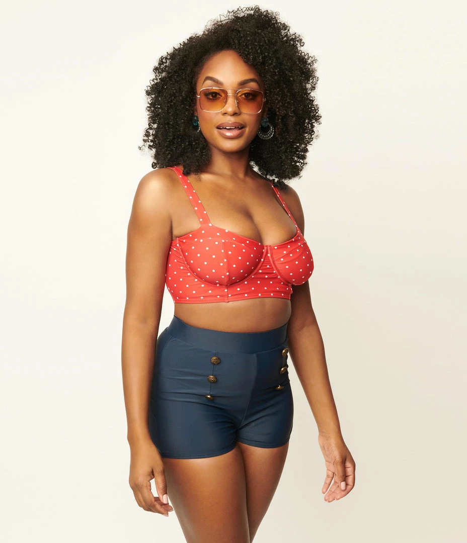 SKU: unique-vintage-5025455112294 Categories: Clothing, Sale, Swimwear Tags: 1950s, Bikini Bottoms, Mix and Match, Modest Swim, Navy Swim, Sale, Swimwear, Two Piece