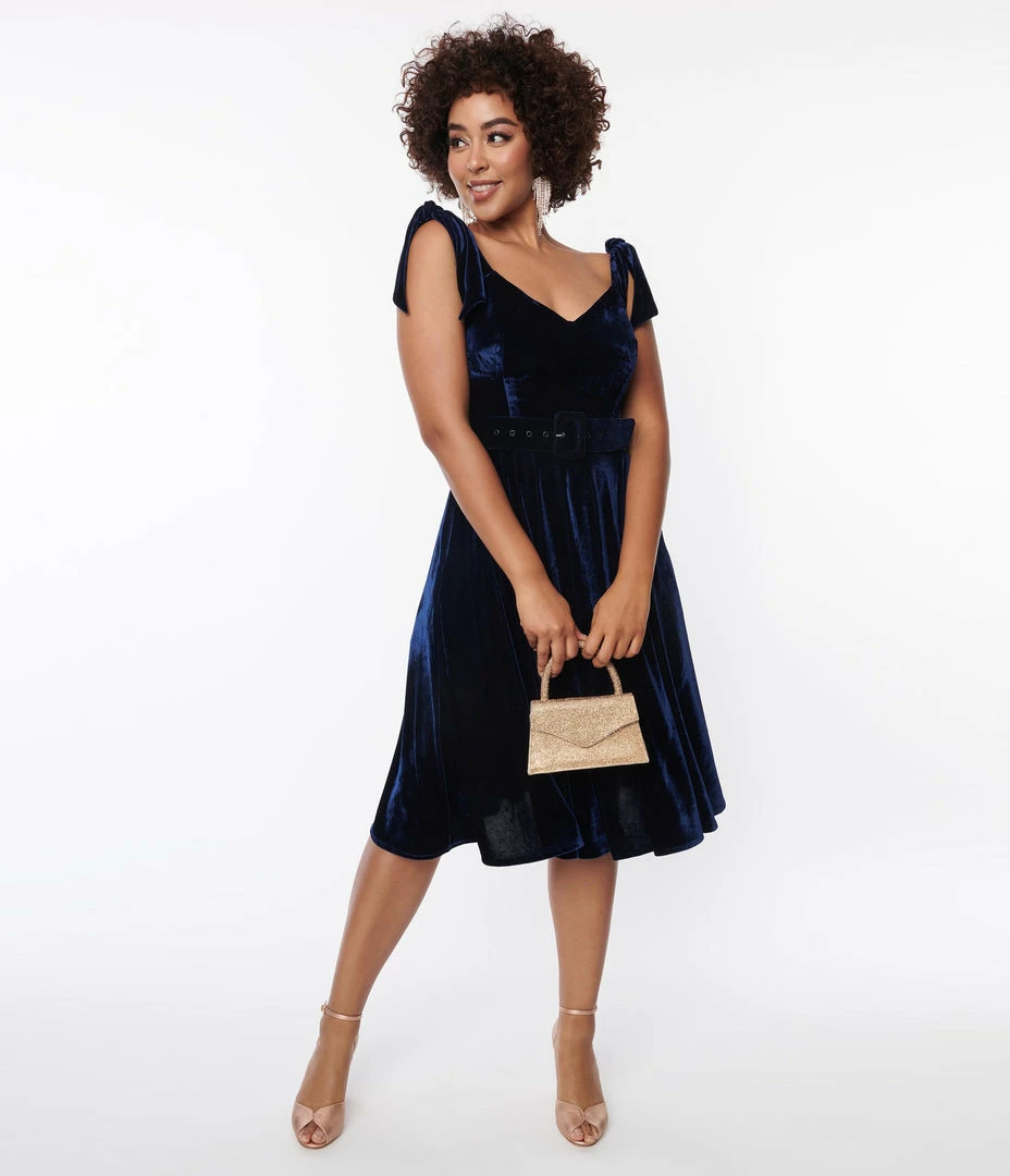 Best Sale ๐ฏ Unique Vintage Navy Velvet Prairie Swing ๐ Dress ๐