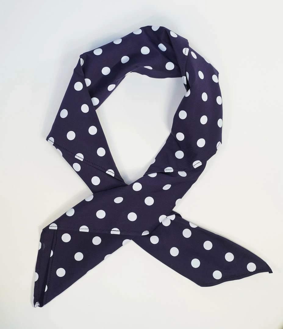 Best Pirce ✨ Unique Vintage Navy & White Dots Hair Scarf Hair Accessories 🎉