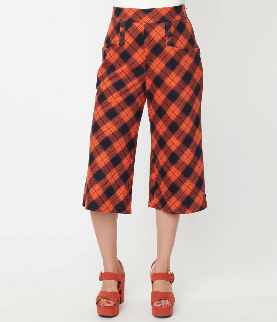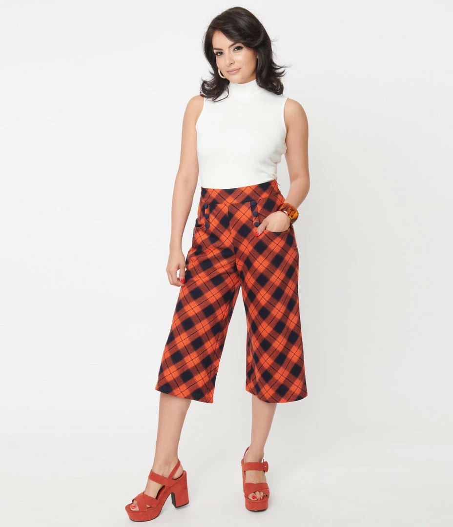 Top 10 ๐ Unique Vintage Orange & Dark Navy Plaid Ginger Culottes Sale ๐