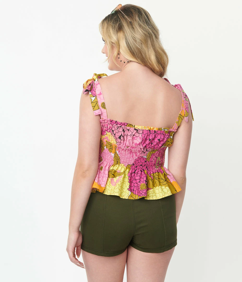 Best reviews of 🎉 Unique Vintage Pink & Yellow Floral Breezy Babe Crop Top Sale 👏
