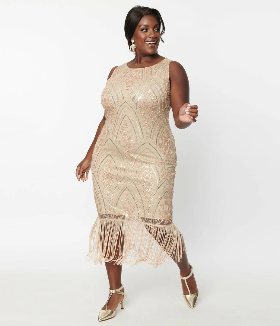 Best reviews of ๐ Unique Vintage Plus Size 1920s Champagne Sequin & Pearl Sleeveless Flapper ๐ Dress ๐